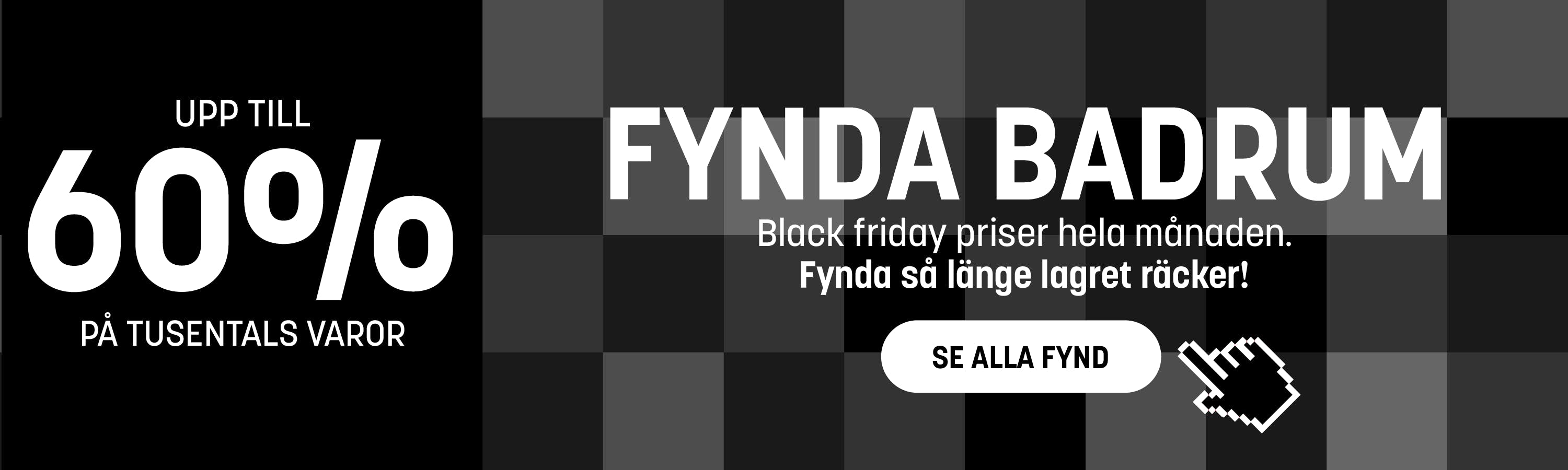 Det stora sortimentet av kakel, mosaik och klinkers ger oändliga möjligheter att skapa ramen till ett äkta drömbadrum. Numera är även trä ett alternativ för den som söker ett vackert och levande material. Här finns inga begränsningar. Oavsett vilken färg eller stil du är ute efter till ditt badrum har vi ett stort sortiment med allt för svart badrum och vitt badrum. Välj efter behag en ångande duschkabin med en mängd funktioner och/eller ett badkar i valfri stil, alltifrån modernaste bubbelbadkar till klenoder med lejontassar.