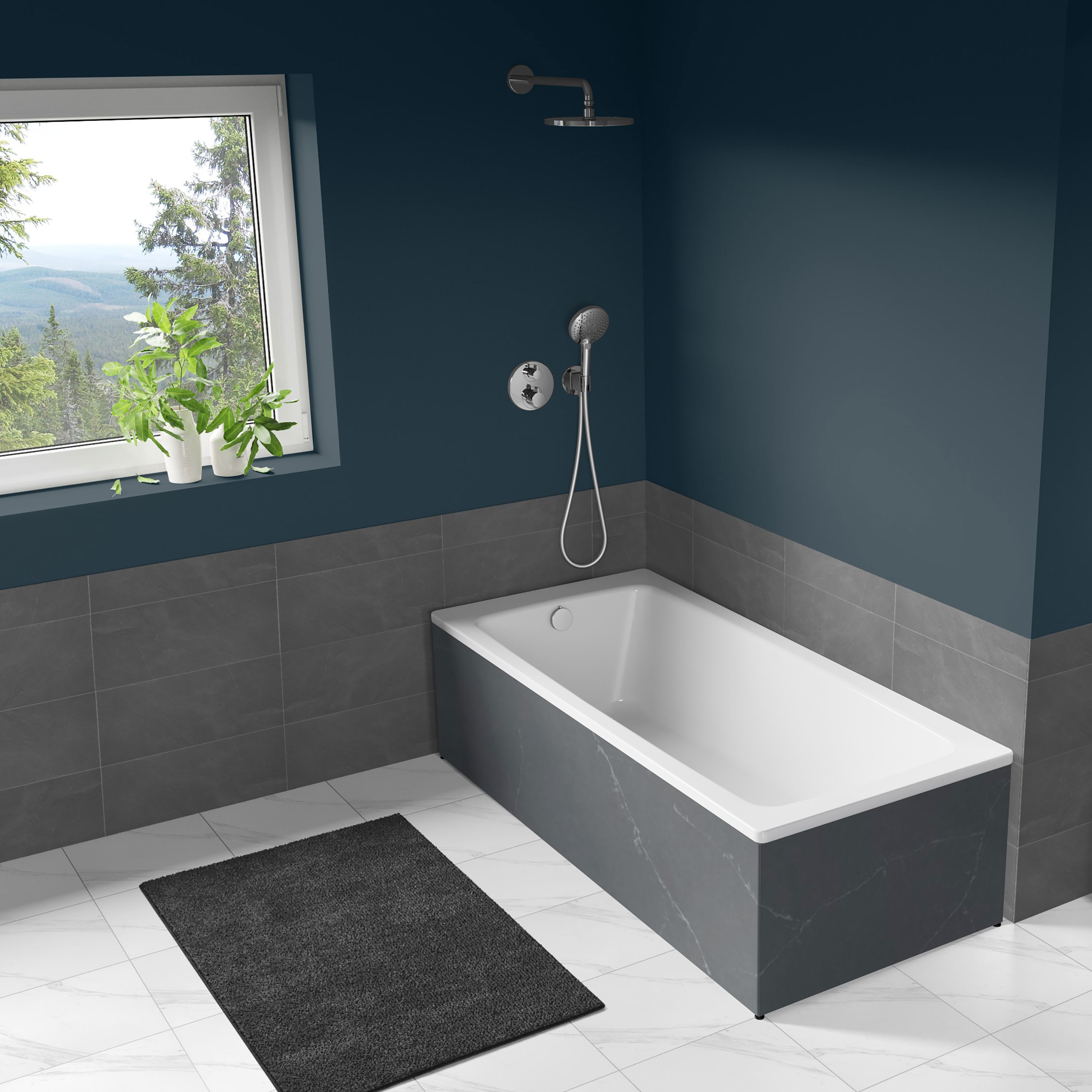 Badkar Langenfeld Cayono är ett badkar med tydliga linjer som är skapat med funktion i tanken. Branta sidor som skapar stor badyta, platt golv som underlättar för duschandet och liten radie i hörnen för att maximera storleken. En sluttande kortsida för komfort att bada i och en brantare sida för att komma närmare duschen. Dessa anledningar gör Cayono till ett av Langenfelds populäraste badkar.