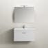 Hafa Go tvättställsskåp med mjukstängande låda, nedsänkt handfat och spegelskåp. Tvättställsskåpet är enkelt att installera för en person med skena på vägg. Förberett för både vägg- och golvavlopp i bakkant för enkel montering. Justerbara upphängningsbeslag.