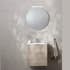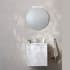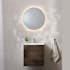 Möbelpaket från Miller Badrum med kommod, tvättställ och rund spegel med toppbelysning.