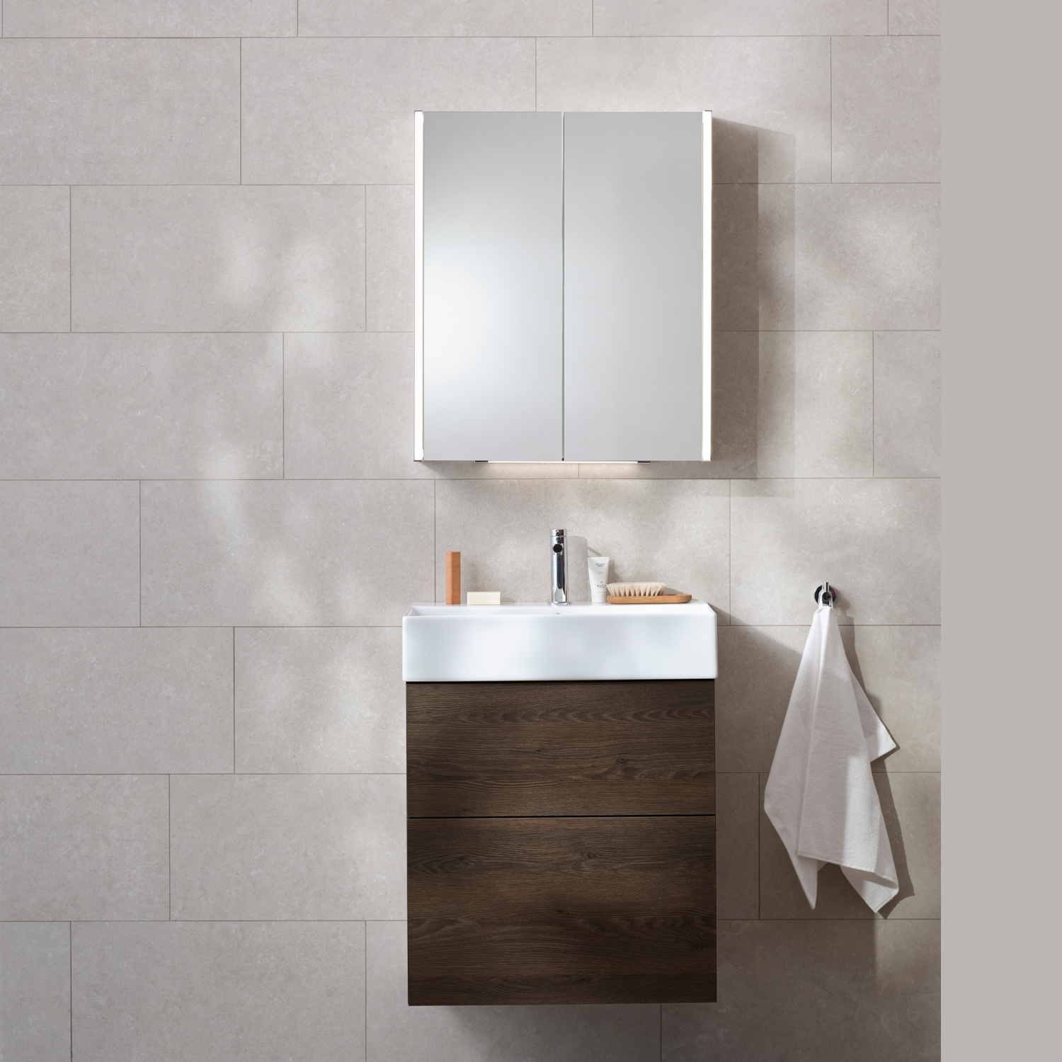 Möbelpaket Miller BadrumNew York med Edge Tvättställ och Spegelskåp