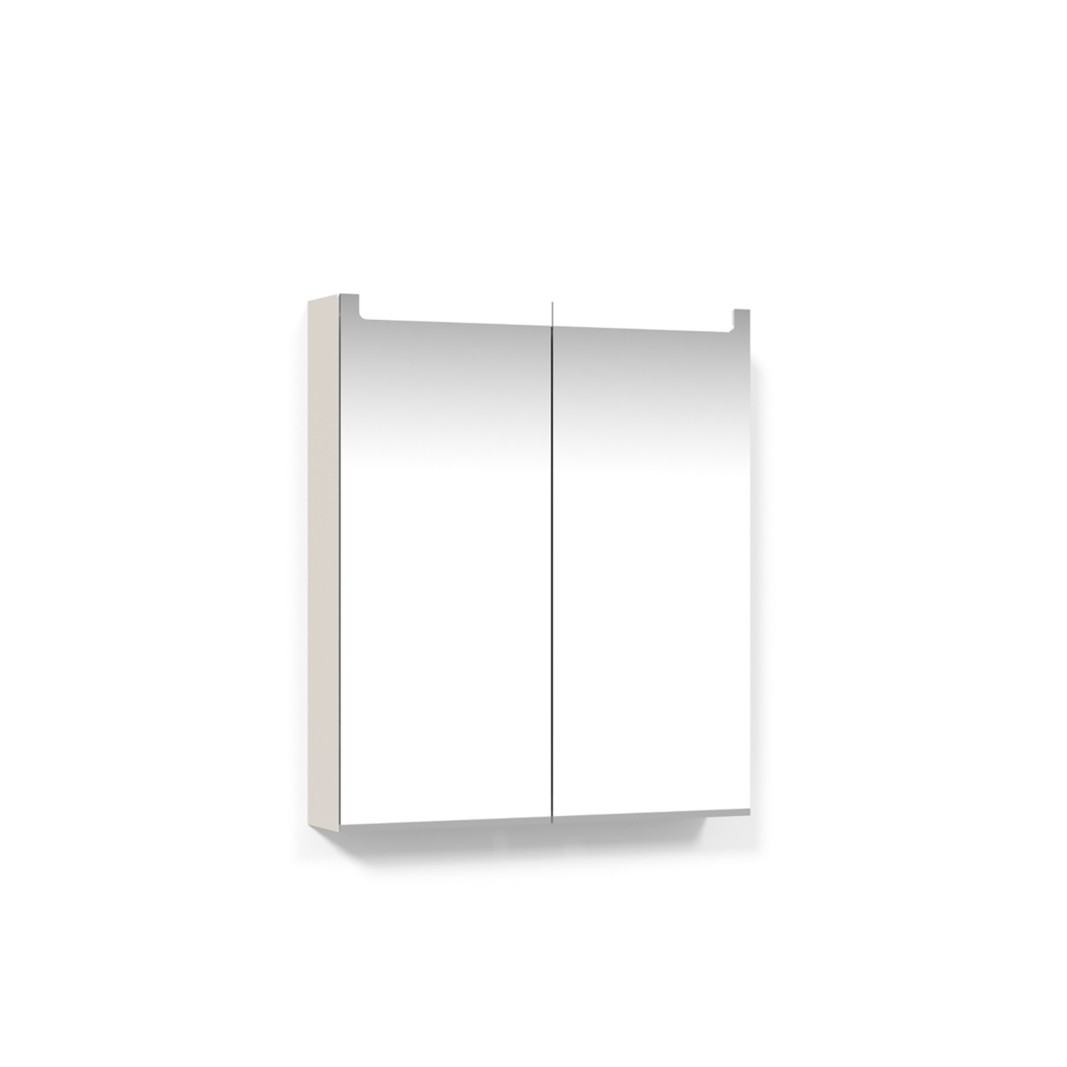 Samtliga spegelskåp har avdelad hyllsektion för höga produkter och ett diskret placerat eluttag. Spegeldörrarna har i nedre kant en frostad sektion mellan glasen vilket helt motverkar fingeravtryck på såväl in- som utsidan. Rampbelysningen är en LED-belysning av högsta klass för att ge dig en fantastisk belysning i badrummet.