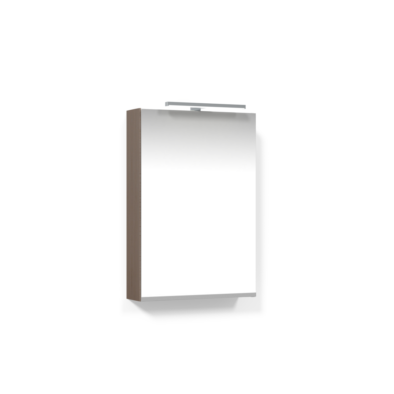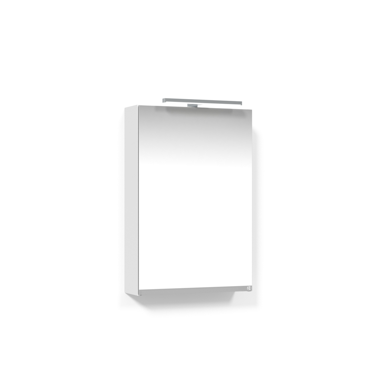 Samtliga spegelskåp har avdelad hyllsektion för höga produkter och ett diskret placerat eluttag. Spegeldörrarna har i nedre kant en frostad sektion mellan glasen vilket helt motverkar fingeravtryck på såväl in- som utsidan. T-belysningen är en LED-belysning av högsta klass för att ge dig en fantastisk belysning i badrummet.