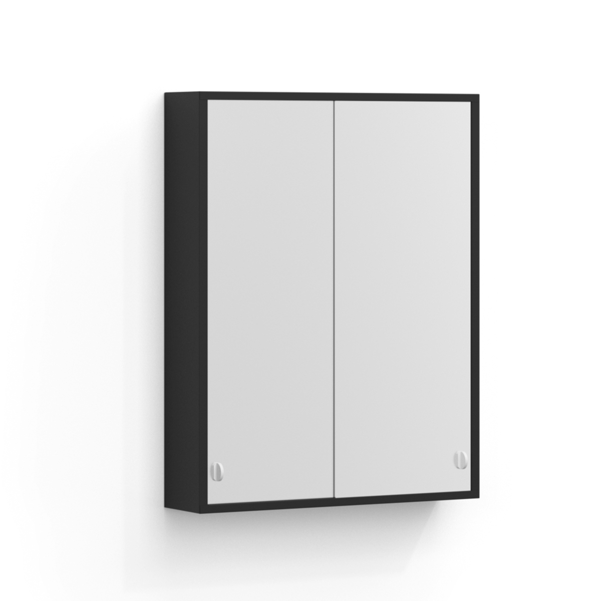 Spegelskåp Svedbergs I:et i plåt med skjutdörrar i spegelglas och dubbla handtag. Med spegel både in- och utvändigt gör I:et till ett stilrent val för det samtida badrummet.