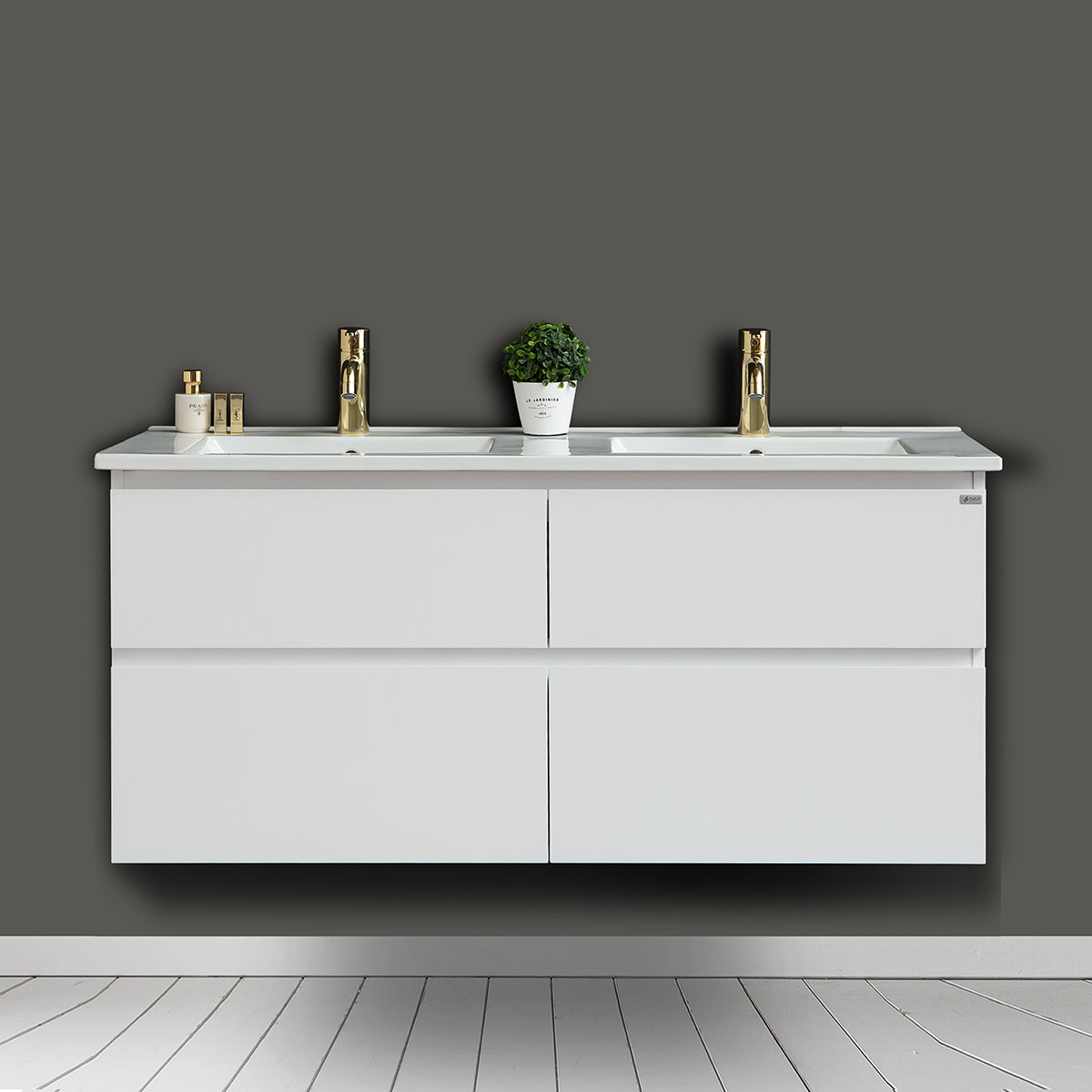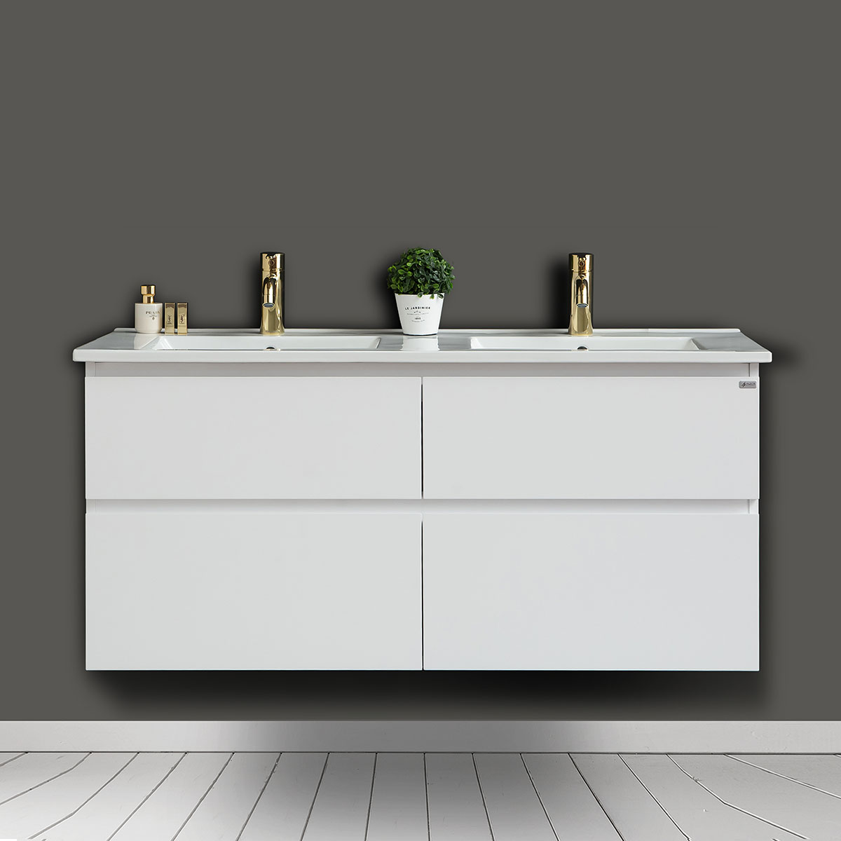 Tvättställsskåp 4AQUASlim H Med 4 Lådor & Grepplist