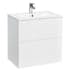 Tvättställsskåp Isella bjuder på en enkel men snygg design som präglas av de tunna och raka linjerna. Det smidiga tvättstället i mineralkomposit adderar ytterligare karaktär till möbeln. Lådorna är mjukstängande.