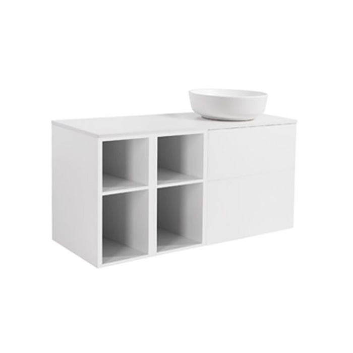 Tvättställsskåp AlternaIsella med Öppen Förvaring, Bänkskiva och Ovanpåliggande Tvättställ