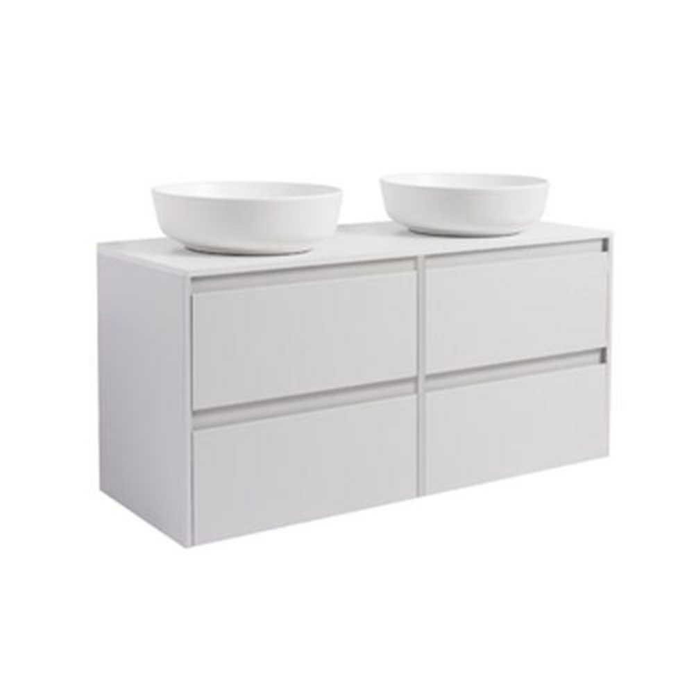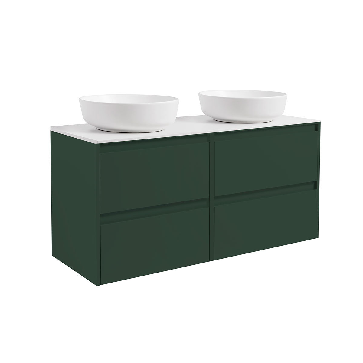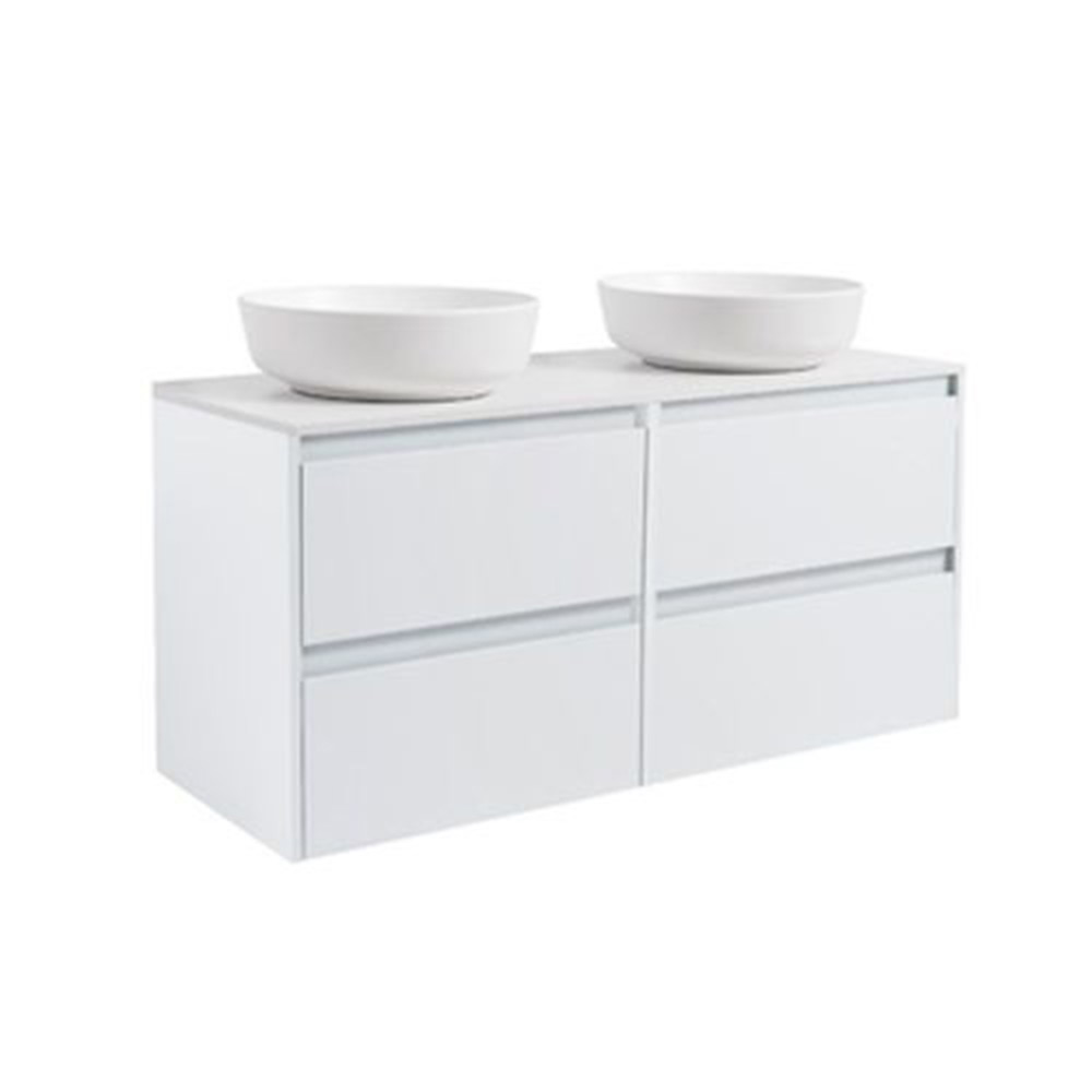 Tvättställsskåp AlternaLuxor 120 Dubbelt med Bänkskiva Kvartskomposit och Runt Tvättställ