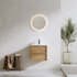 Spegel Bathlife Skina är en rund spegel med en elegant LED-belysning som belyser väggen bakom spegeln. Belysningen har ett normalvitt ljus. Spänning: 220-240 V. Spegelns ram består av frostat glas som släpper igenom ljuset.