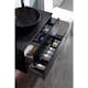 I vitt och ekutförande ingår bänkskiva i vit Carraramarmor. I svart och brun ek ingår bänkskiva i svart granitkeramik. Skåpet ger snygg och smart förvaring i de två lådorna som är mjukstängande. Lådorna har så kallad push-open funktion, vilket innebär att man öppnar lådorna genom ett tryck på utsidan. Tvättställsskåpet har batteridriven lådbelysning (AAA-batterier, ingår ej) och även eluttag (230 V).
