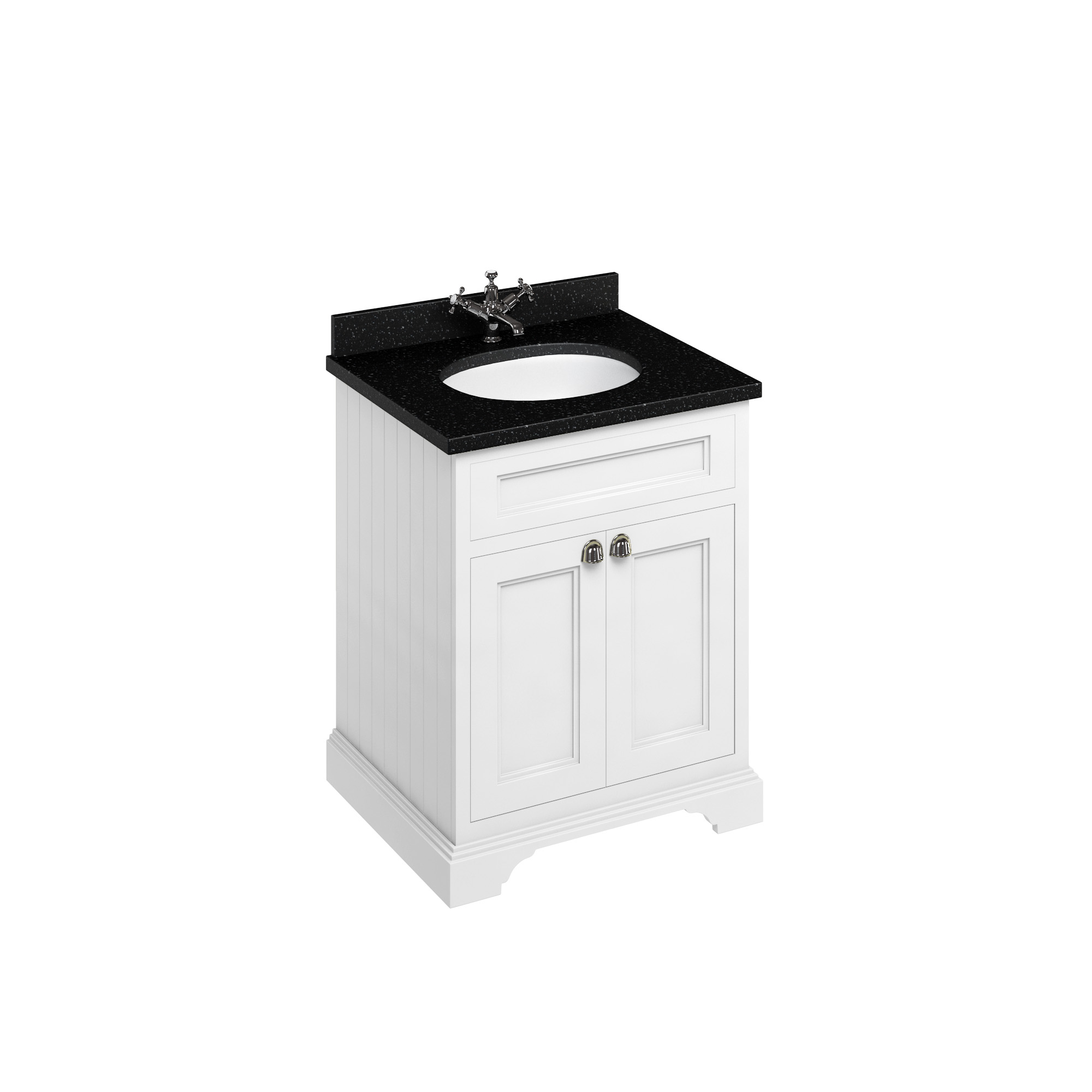 Tvättställsskåp Burlington FF8 med tvättställ är den perfekta lösningen för den som behöver spara utrymme och samtidigt få förvaringsmöjligheter i badrummet. Den är tillverkad i trä, MDF och solid surface och är utrustad med mjukstängande luckor. Bänkskivan är utan blandarhål, men går att borra eget blandarhål. Finns i olika färger och val av bänkskiva med integrerad handfat.