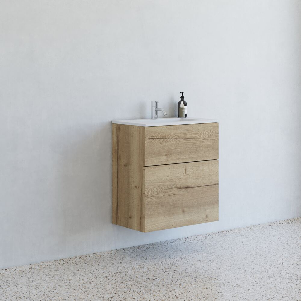 Detta möbelpaket är en elegant och funktionell lösning för små och smala badrum där varje centimeter räknas. Med ett djup på endast 35 cm skapas ett lätt och luftigt uttryck utan att ge avkall på förvaringsutrymmet. Tvättställsskåpet är utrustat med två rymliga lådor, där den nedre är extra djup och perfekt för förvaring av handdukar, flaskor och andra större badrumstillbehör. Lådorna är fullt utdragbara och har en soft-close-funktion som gör åtkomsten smidig och stängningen tyst.
