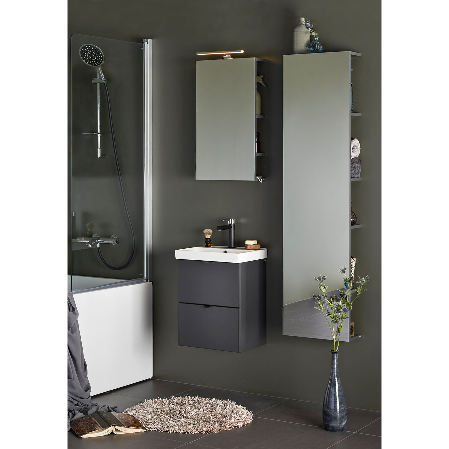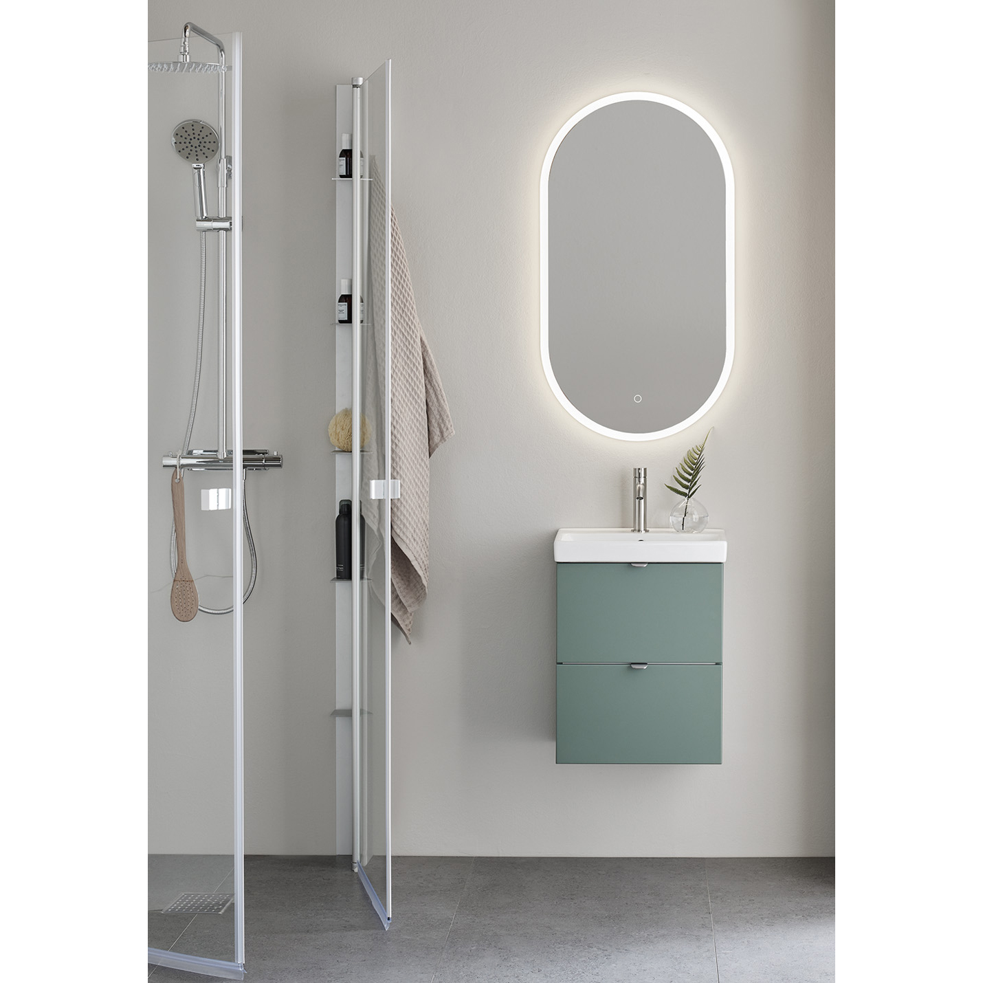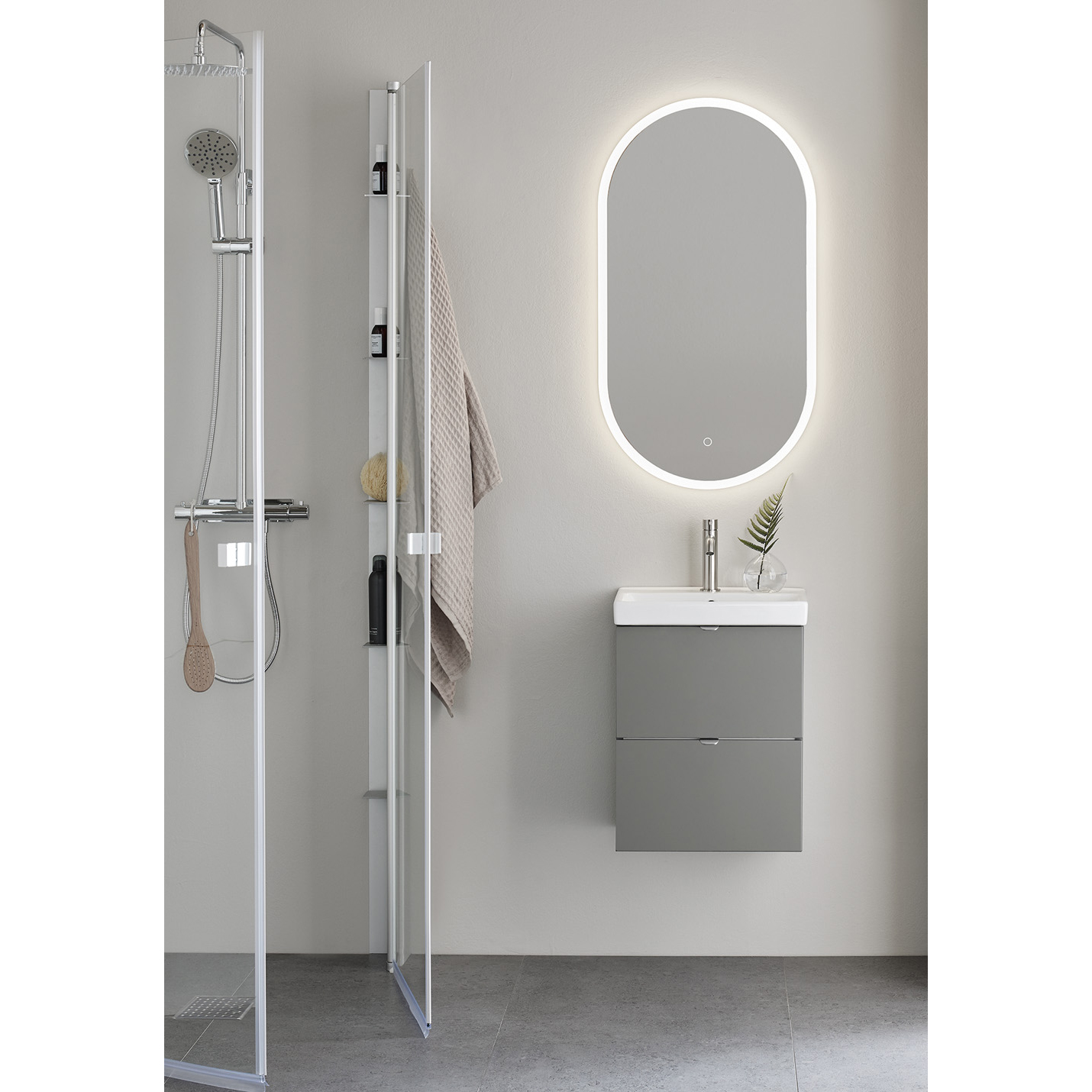 Hafa Neat är ett praktiskt nätt tvättställsskåp inklusive Neat tvättställ med överfyllnadsskydd. Skåpet har mjukstängande funktion och är enkelt att installera för en person med skena på vägg och justerbara upphängningsbeslag.