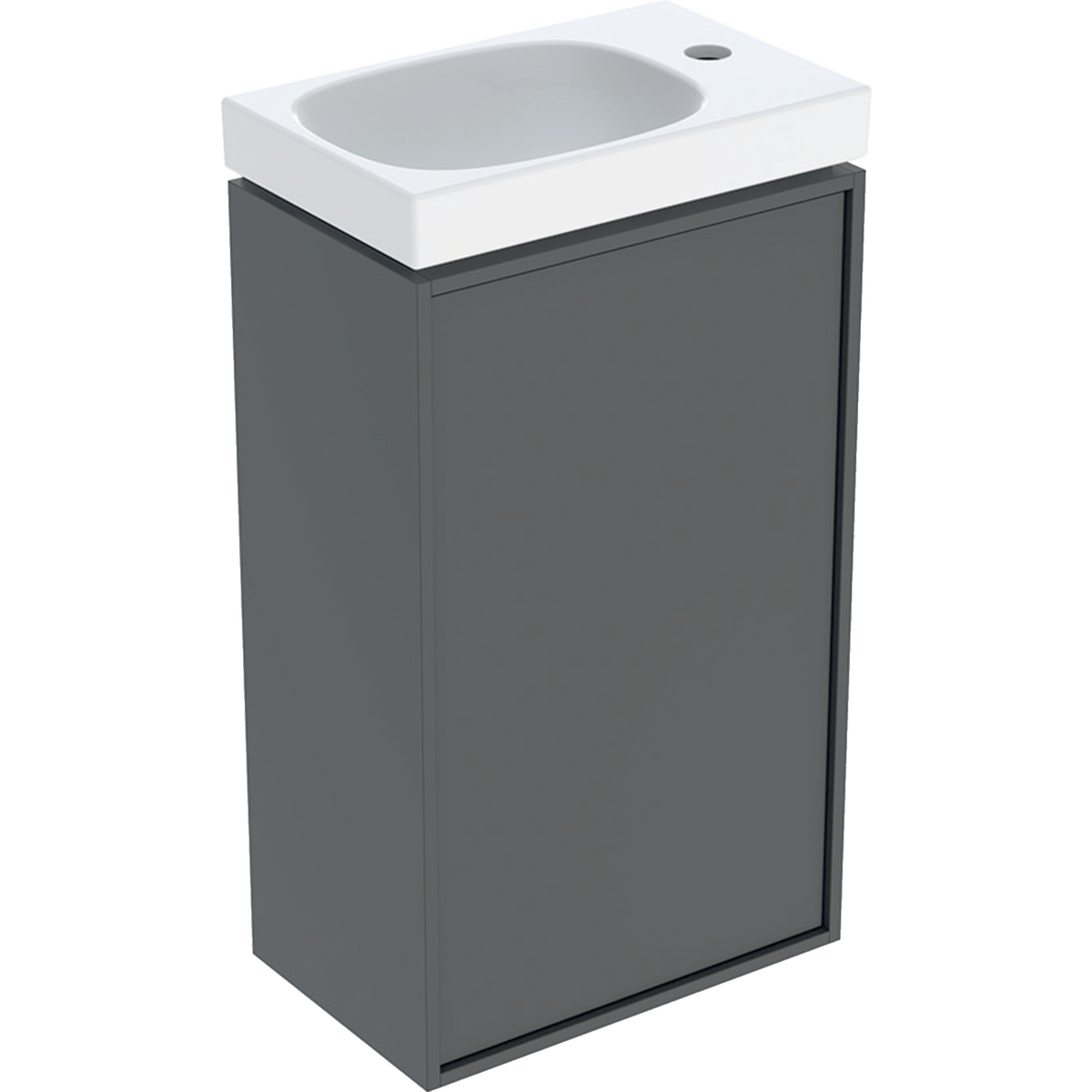 Tvättställsskåp Ifö Sense Art Kompakt är en komplett badrumsmöbel med underskåp/ tvättställsskåp och tvättställ med kranhål till höger. Skåpet passar utmärkt till gästtoaletten eller det mindre badrummet. Tvättställskåpet har tillverkats i fukttåligt material och har en lucka med push-to-open funktion som kan monteras till höger eller vänster. Skåpet har förborrade hål för handtag. Geberit pungvattenlås ingår.