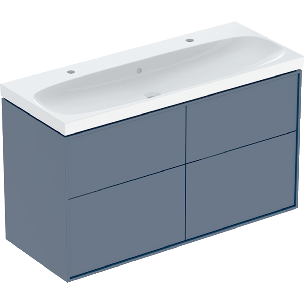 Lådorna kan förses med push-to-open funktion, handtag eller knopp. Lådorna har ingen utskärning för vattenlås vilket ger mer förvaringsutrymme. Platsbesparande avlopp med pop-up ventil från Geberit ingår och önskar man extra stöd till tvättställskåpet så går det att köpa till ben. Antiglidmatta för att hålla badrumsprylarna på plats ingår.