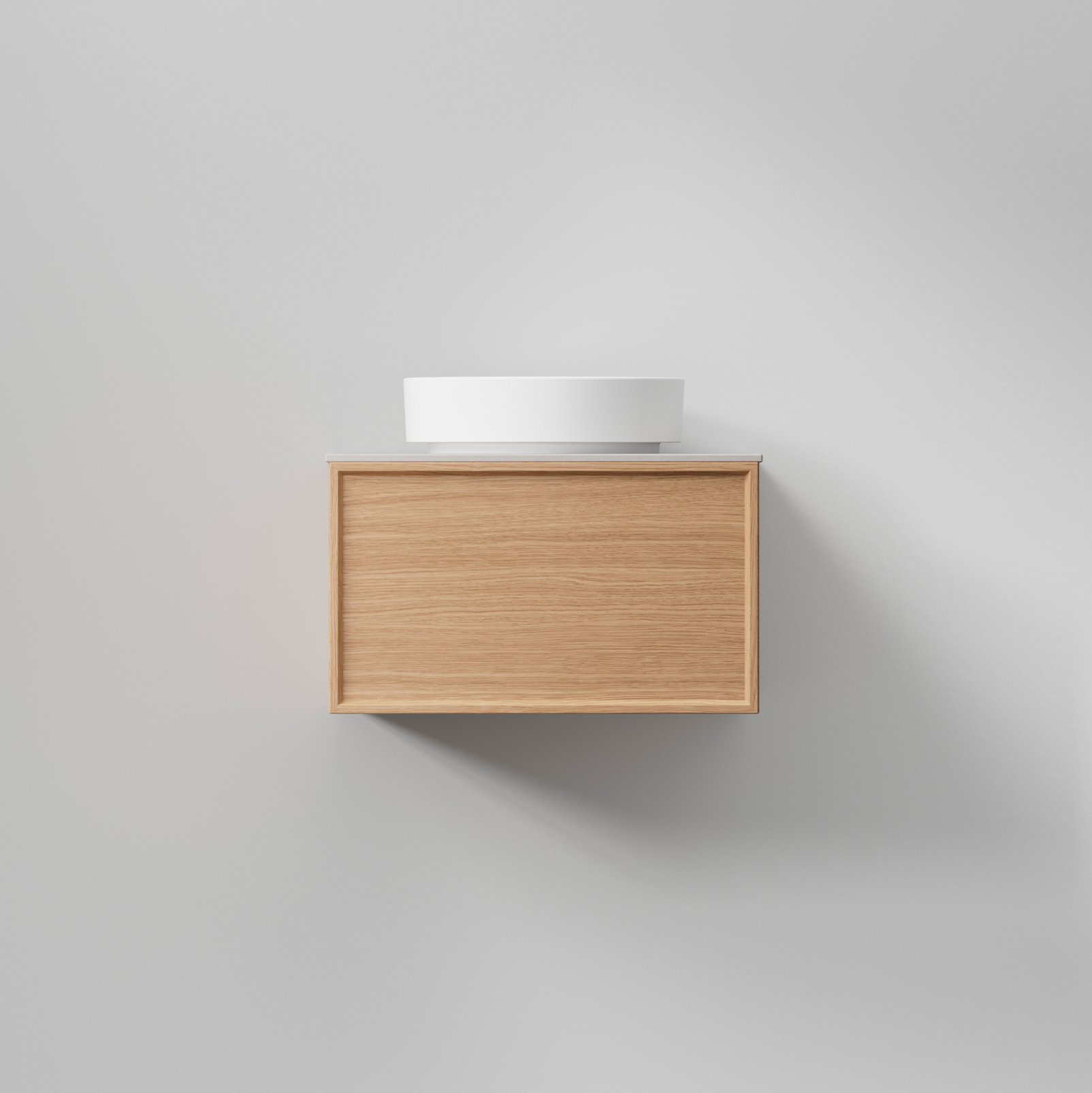 Tvättställskåp INR Air Wood 60 är ett modernt tvättställsskåp med hel lådfront med fackindelad innerlåda. Fingerskarvade detaljer i massiv ek.