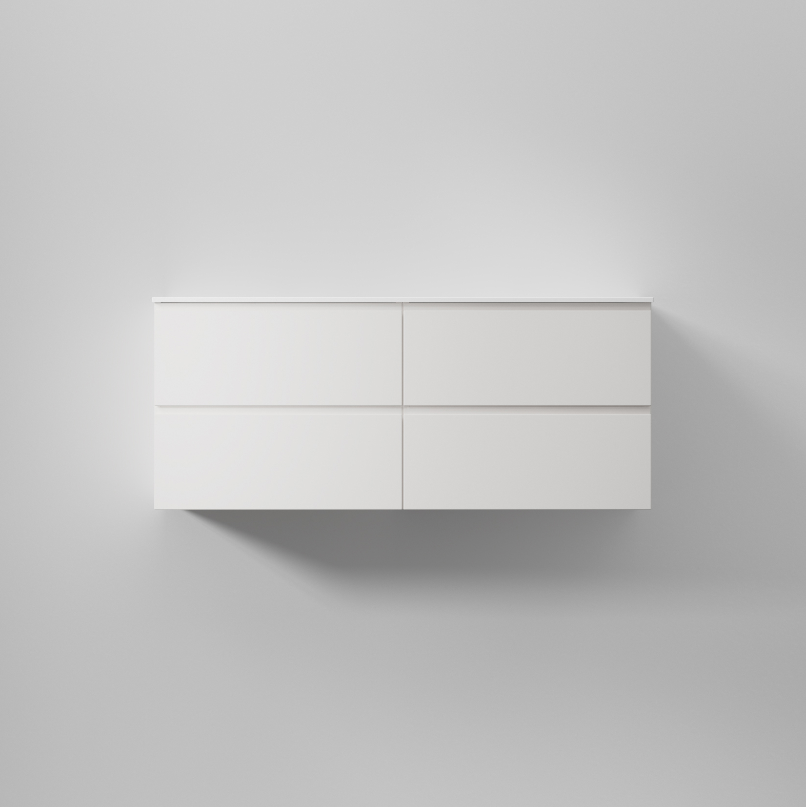 Välj mellan olika färger och storlekar. Komplettera din kommod med antingen ett dubbelt tvättställ i ett stycke eller en bänkskiva med två runda tvättställ. Välj till tvättställsblandare och bottenventil i din stil. För extra bekvämlighet kan du välja till sensorstyrd belysning, under och i övre låda som fadar upp när du kommer in i rummet samt dubbla eluttag.