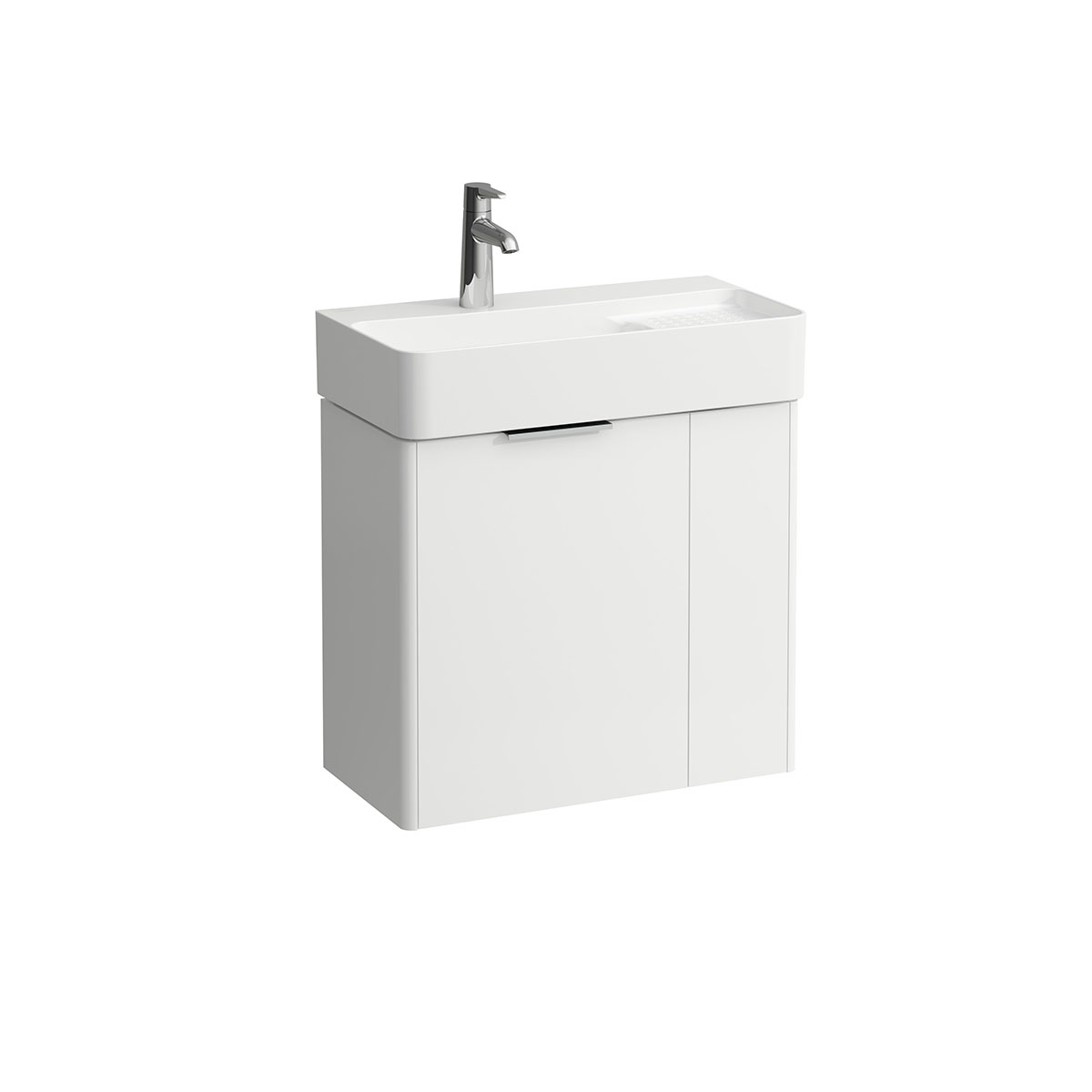 Tvättställsskåp Laufen Base är ett stilrent, enkelt tvättställsskåp med två luckor för vägghängd montering.