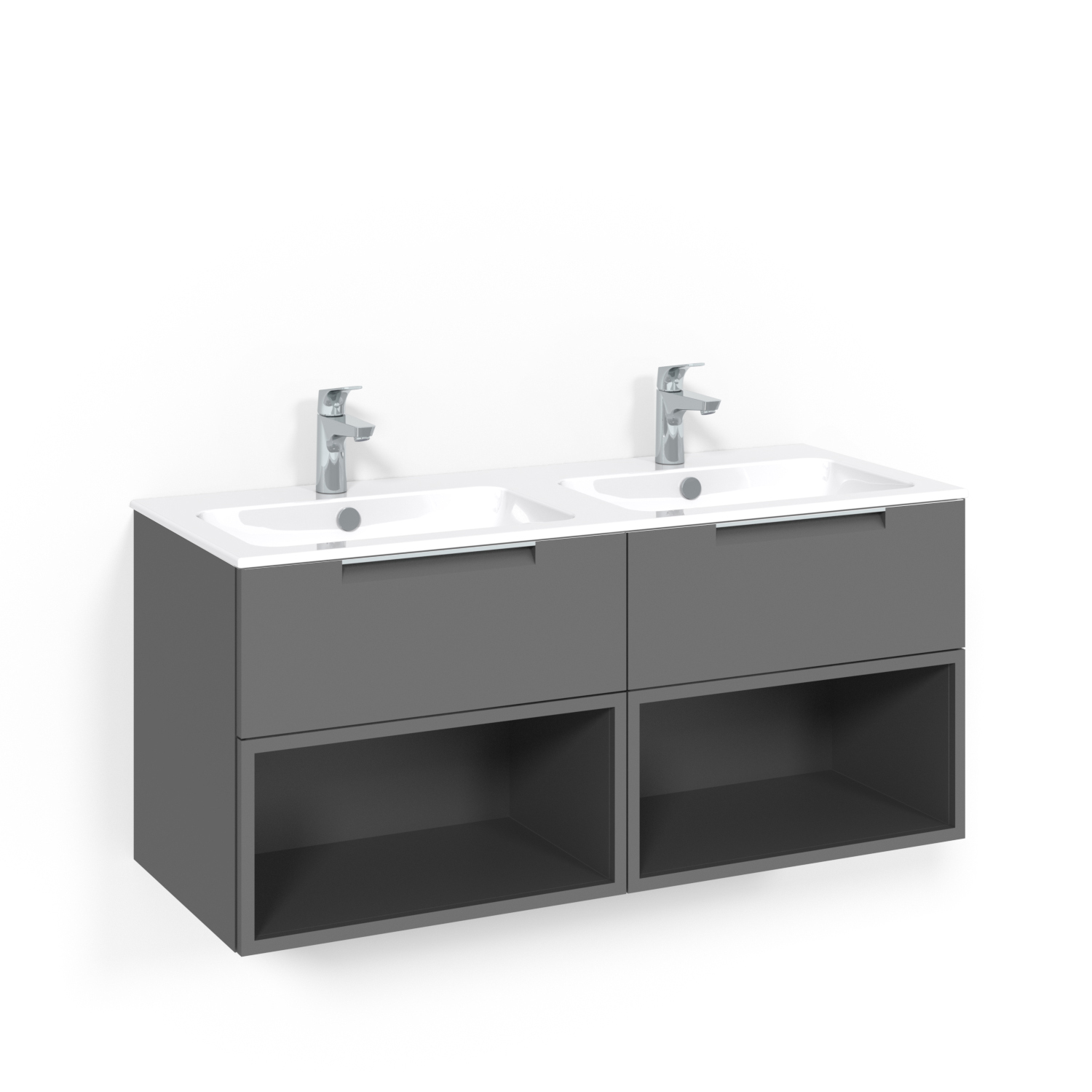 Tvättställsskåp Macro DesignCrown Open Box med Dubbelt TvättställBredd 1200 mm, Ljus Ekfanér