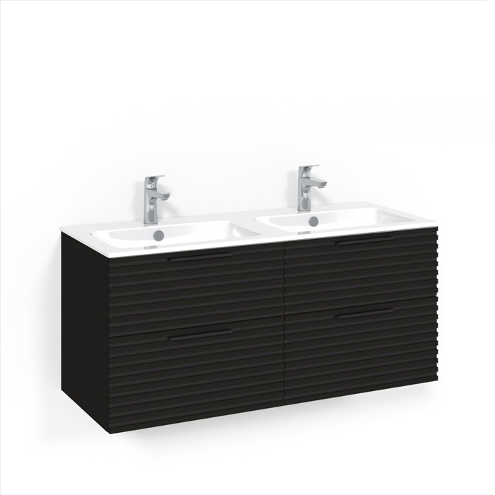 Tvättställsskåp Macro DesignCrown Stripe med Dubbelt TvättställBredd: 1200 mm, Ljus Ekfanér