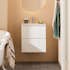 Tvättställsskåp Noro Vega är en modern möbel i ett praktiskt, lite mindre mått och med porslinstvättställ. De två lådorna med Soft Close skapar gott om förvaring för ett litet badrum och har integrerade grepp. Badrumsskåpet har en tålig lackerad yta och är dessutom förberett för vägg- och golvavlopp.