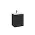 - Möbelstommen i vald storlek och färg, porslintvättställ, platsbesparande vattenlåsutrustning samt bottenventil och bräddavloppsventil
