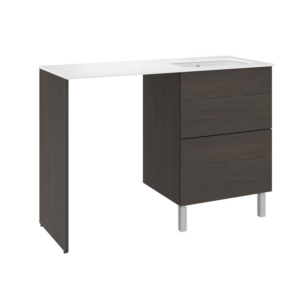 - Tvättstället levereras separat, med hål för blandare och tvättställ färdigt i bänkskivan. (Blandarens placering är centrerad längst bak.)