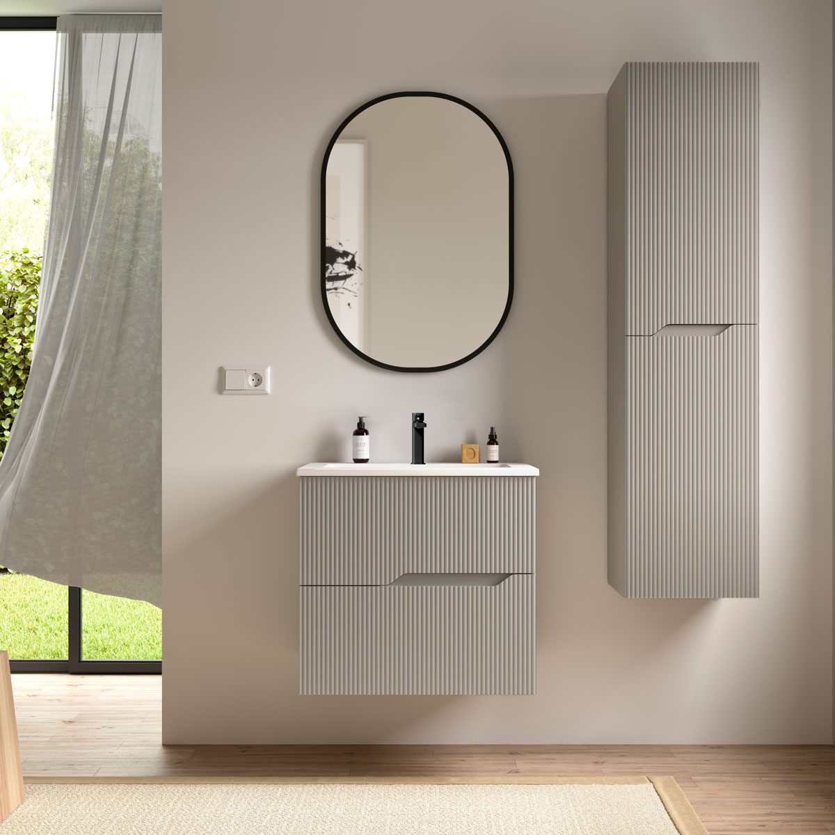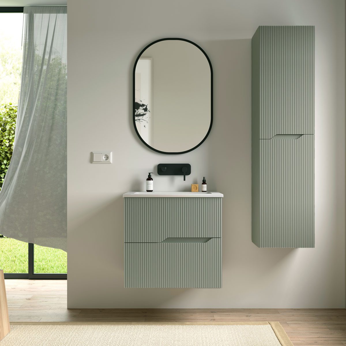Tvättställsskåp Tenfors Bambu är en badrumskommod som kombinerar sofistikerad design med praktiska funktioner, och är skapad för att bli ett blickfång i varje badrum. Med sin unika textur på lådfronterna, skapar den ett modernt och naturligt utseende som samtidigt är varmt och inbjudande. Texturen på lådfronterna är både estetiskt tilltalande och praktiskt funktionell, vilket gör möbeln till en perfekt balans mellan stil och användbarhet. Finns att köpa i olika färger och storlekar. Komplettera med tvättställ, tvättställsblandare och bottenventil.