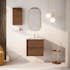 Både kommoder och högskåp finns i färgalternativen Ek, Valnöt, Grå Furu och Beige Mink, med autentiska träimitationer som bidrar till en varm och naturlig känsla i badrummet. Den laminerade MDF-ytan är fukttålig och hållbar, vilket gör möblerna särskilt lämpade för badrumsmiljöer. De subtila nyanserna och detaljerna i träimitationen skapar en känsla av exklusivitet och stil, medan den beigelackerade ytan ger en mer sober känsla.
