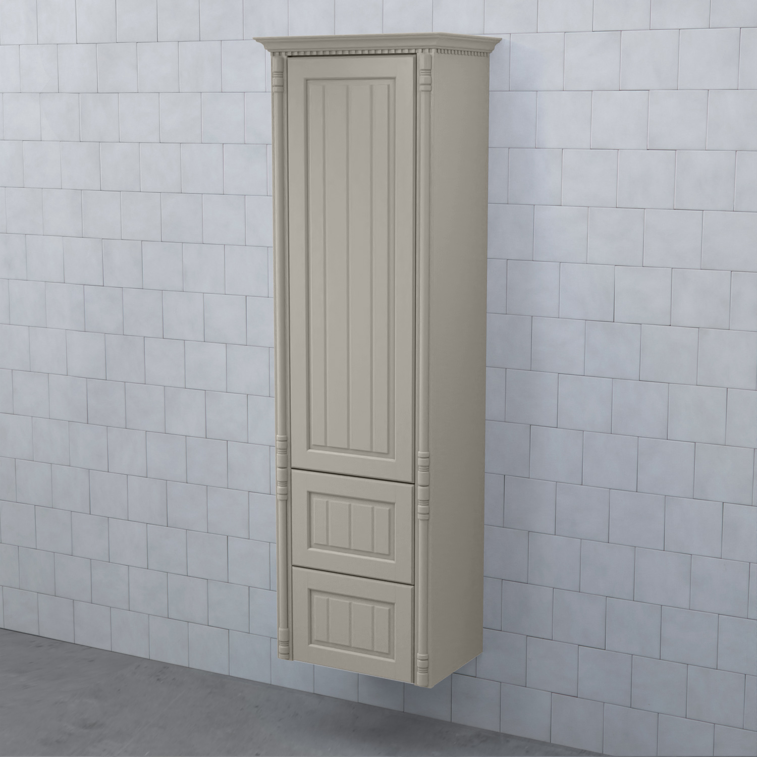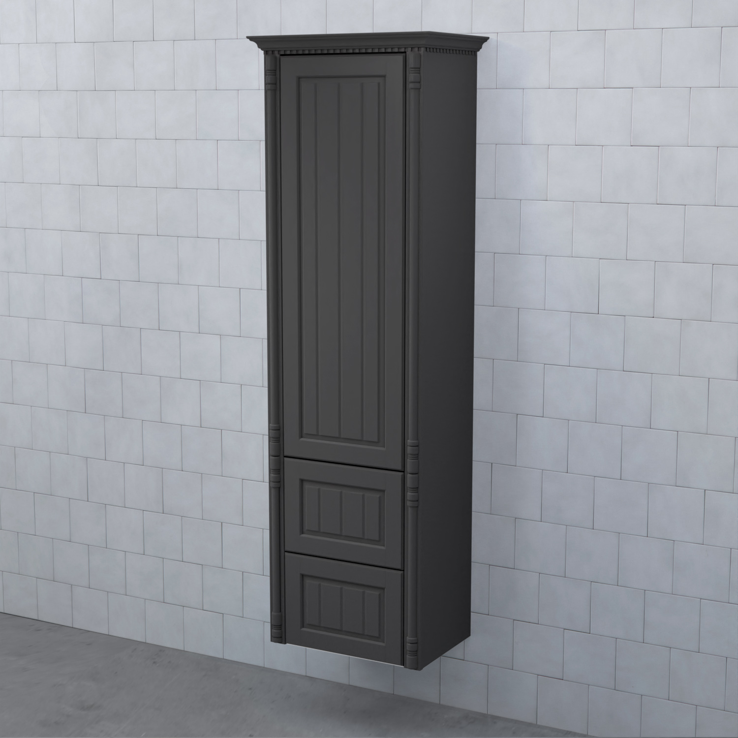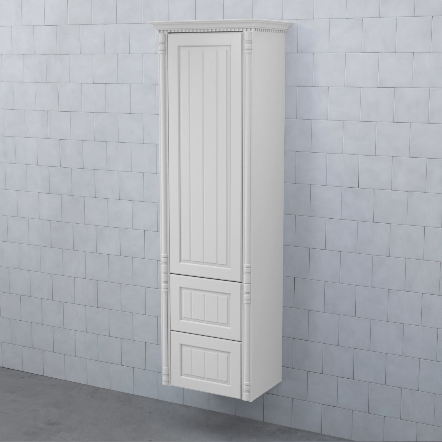 Högskåp Björbo Badrum Valhall med Lucka och 2 Lådor är ett elegant badrumsskåp med en lucka i övre delen av skåpet och två lådor i nederdelen. Lådorna är stabila fullutdraglådor med dämpning och självindrag. Skåpet har en tandad krönlist och pelare som stilfullt ramar in möbeln. Stommen är tillverkad av målad MDF med vackra ramluckor med utfrästa spår.