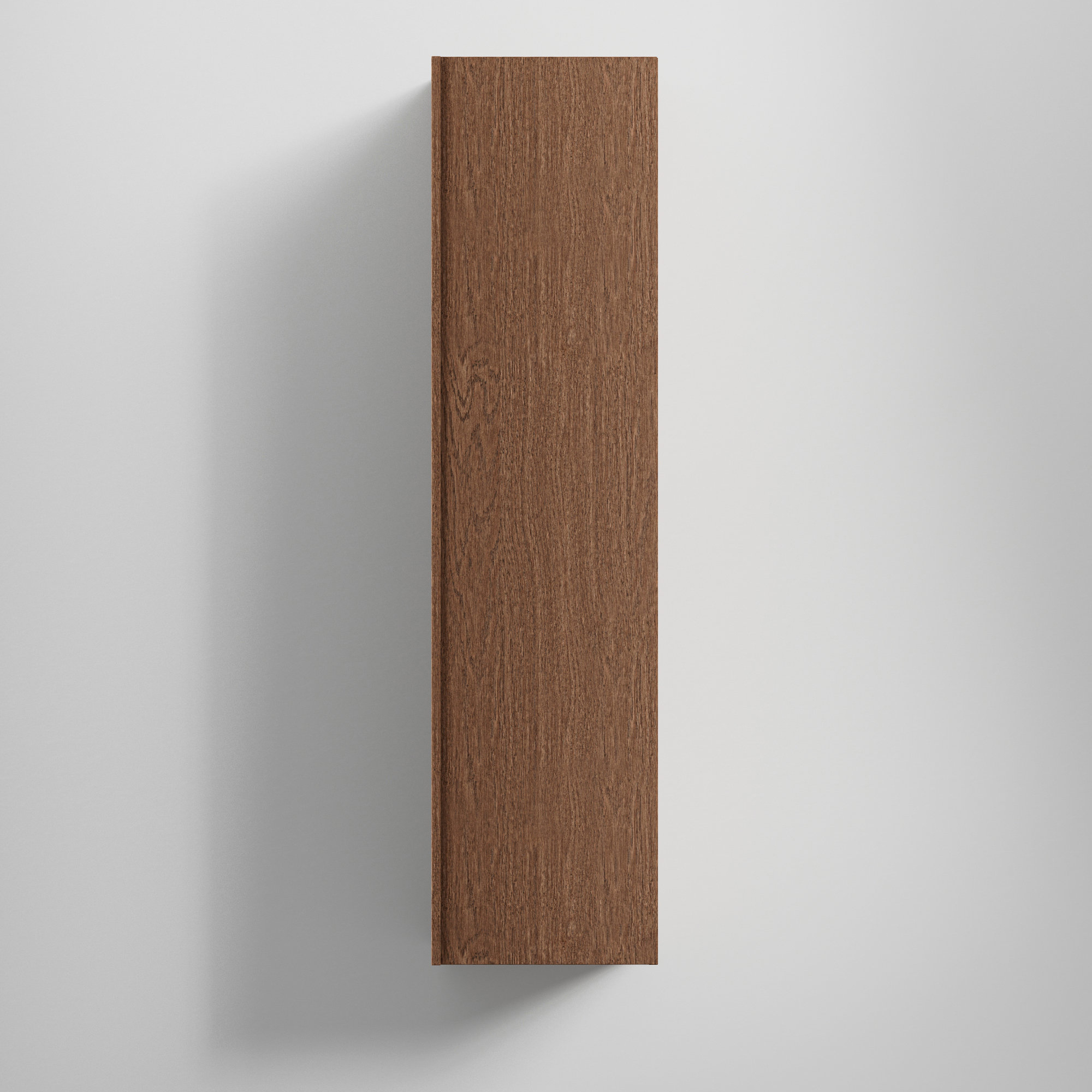 Fanérfronten har ett större, levande mönster som ger en naturlig och exklusiv känsla. Fanéret är av samma typ som på INR högskåp Grip, vilket skapar ett harmoniskt uttryck som passar särskilt bra till INRs möbelserie Terra och även samspelar vackert med INRs möbelserie Core. Välj mellan Natural Oak och Dark Oak för att sätta rätt ton i ditt badrum. Den integrerade grepplisten i massiv ek löper längs hela dörrens långsida och blir en naturlig del av den stilrena designen. Dörren kan monteras höger- eller vänsterhängd och stängs mjukt med soft close.
