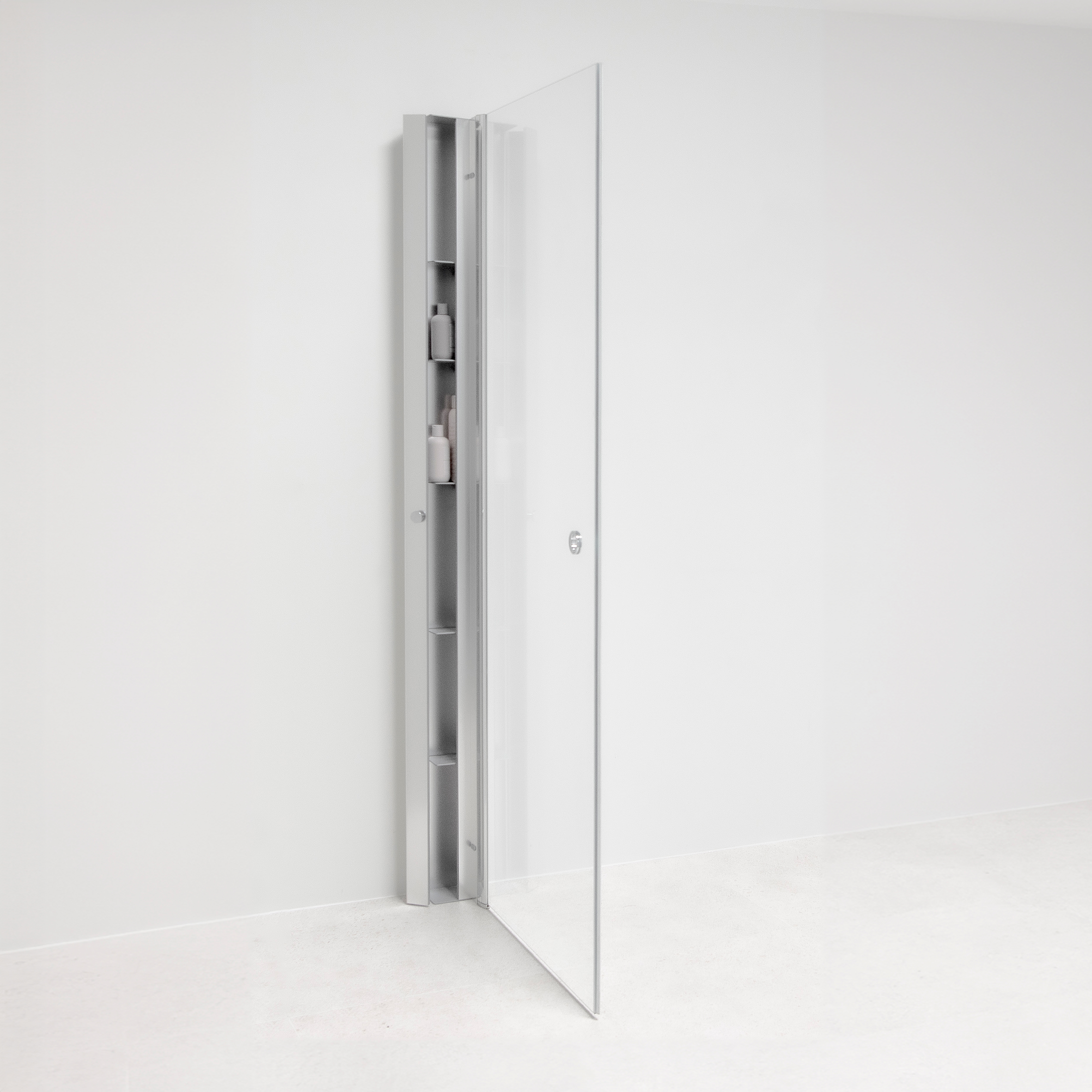 Hyllan är tillverkad i aluminium och designad för att smälta in med duschens profiler och göra den nästan osynlig för ögat. Med fem justerbara hyllplan erbjuder den maximal flexibilitet för att anpassa utrymmet efter dina behov och blir lätt en oumbärlig del av din dusch.