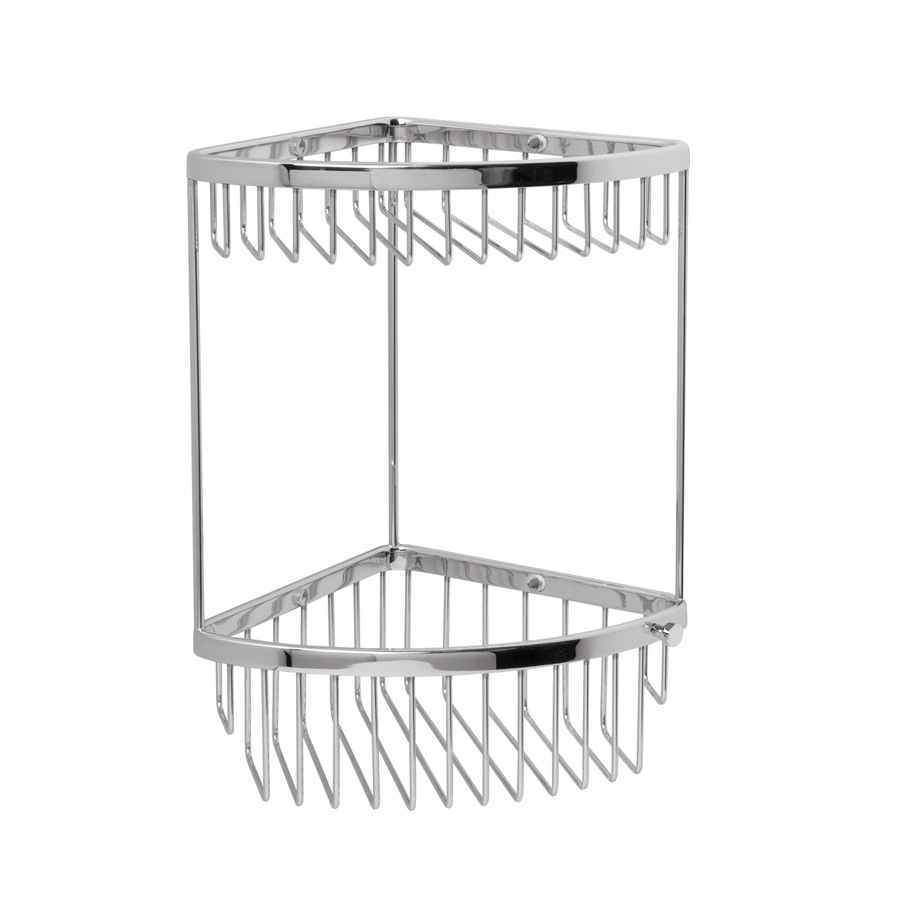 Hörnduschkorg Miller Badrum Classic är en hörnkorg i två plan för montering i hörn. Praktisk krok på kanten. För skruvmontering.
