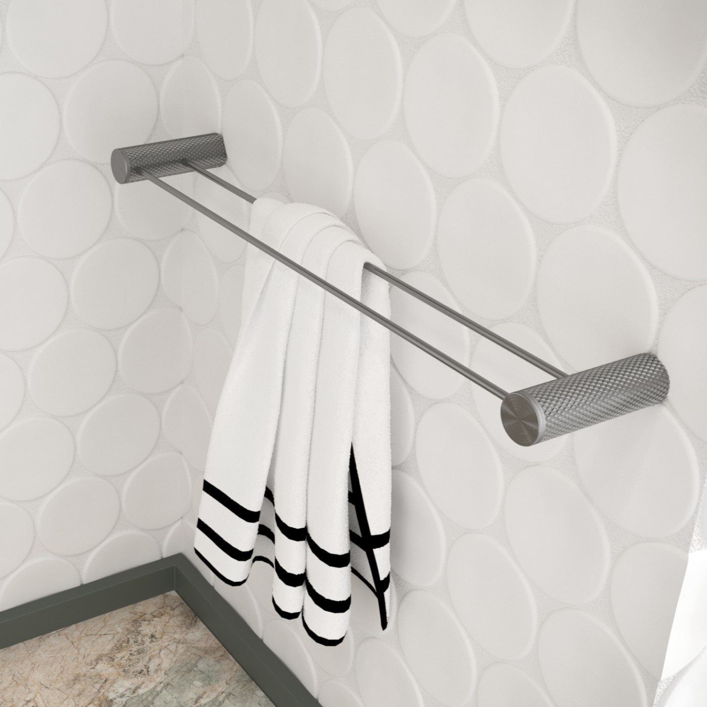 Handduksstång Hietakari Mesh är en elegant handduksstång som igår i serien Mesh. Det är en serie som innehåller badrumstillbehör men en ytbehandling av Mesh vilket gör serien karakteristisk och elegant. Handduksstången tillverkas av mässing.
