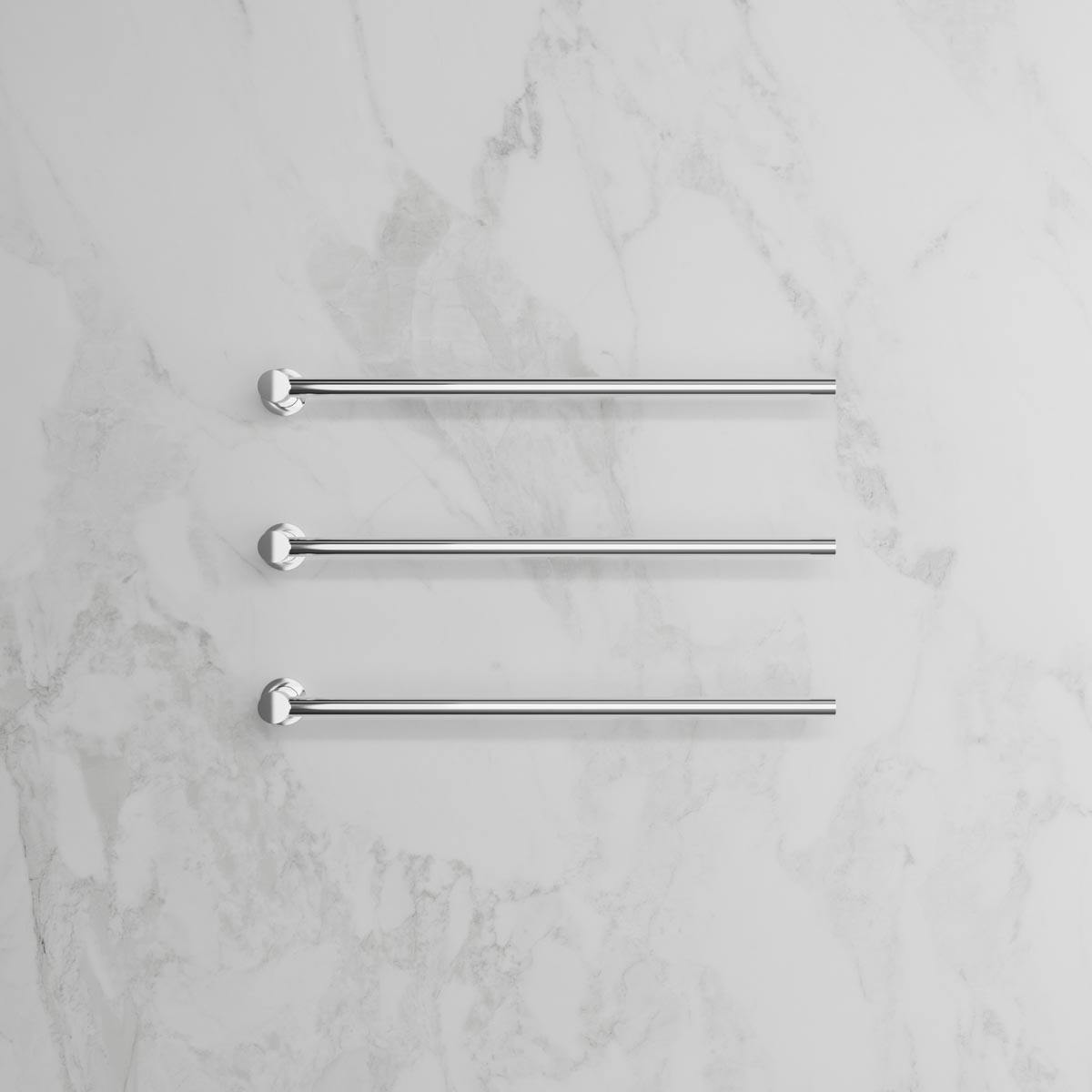 Handdukstork i en avskalad och ren design. I horisontell modell med justerbara stänger som kan installeras i båda riktningarna för maximal funktionalitet. Antalet stänger är anpassningsbart efter personlig smak och behov.