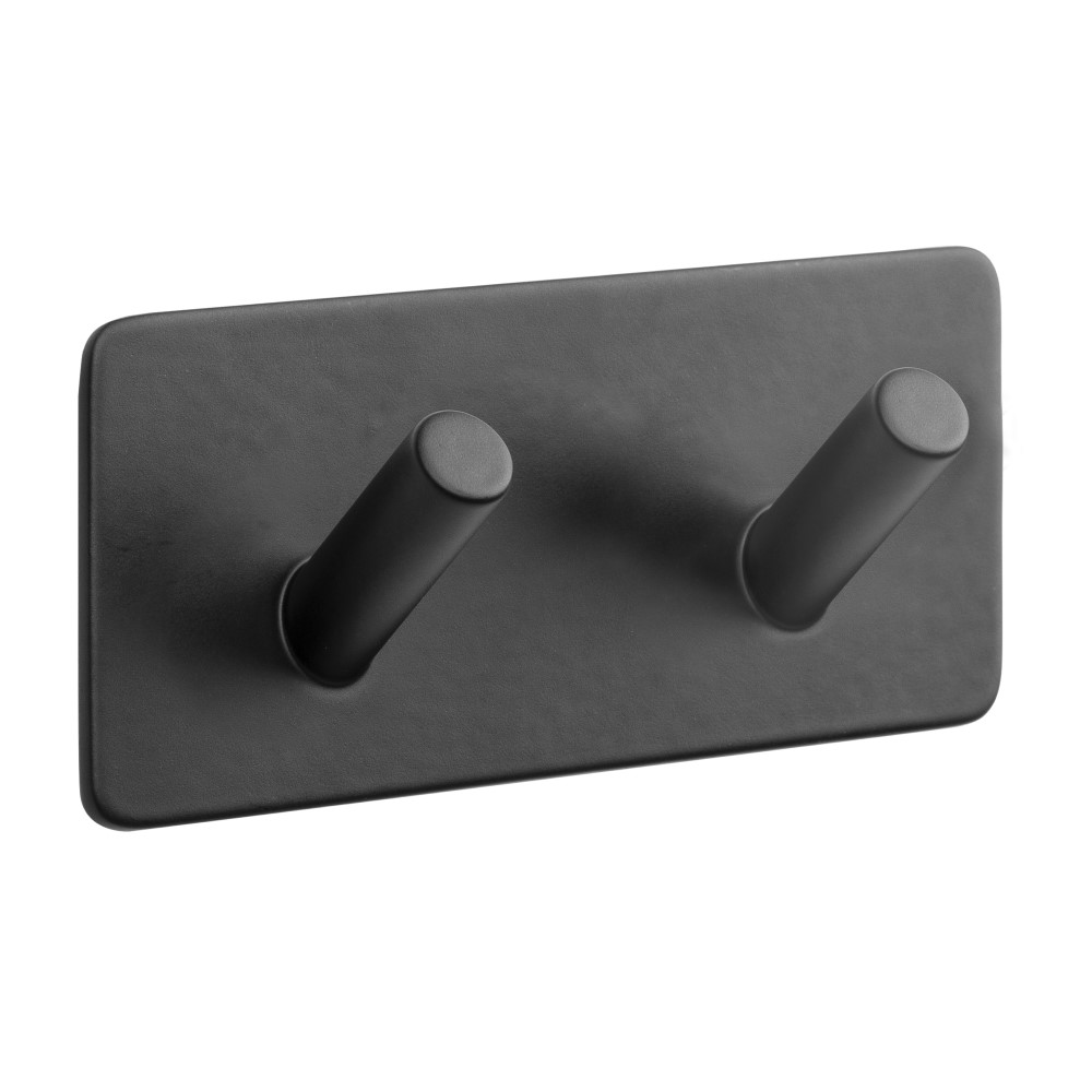 Handdukskrok Björbo Badrum 2-krok är en stilren krokrad med två krokar. Den är tillverkad av metall och tejpas upp på väggen med självhäftande 3M-tejp.