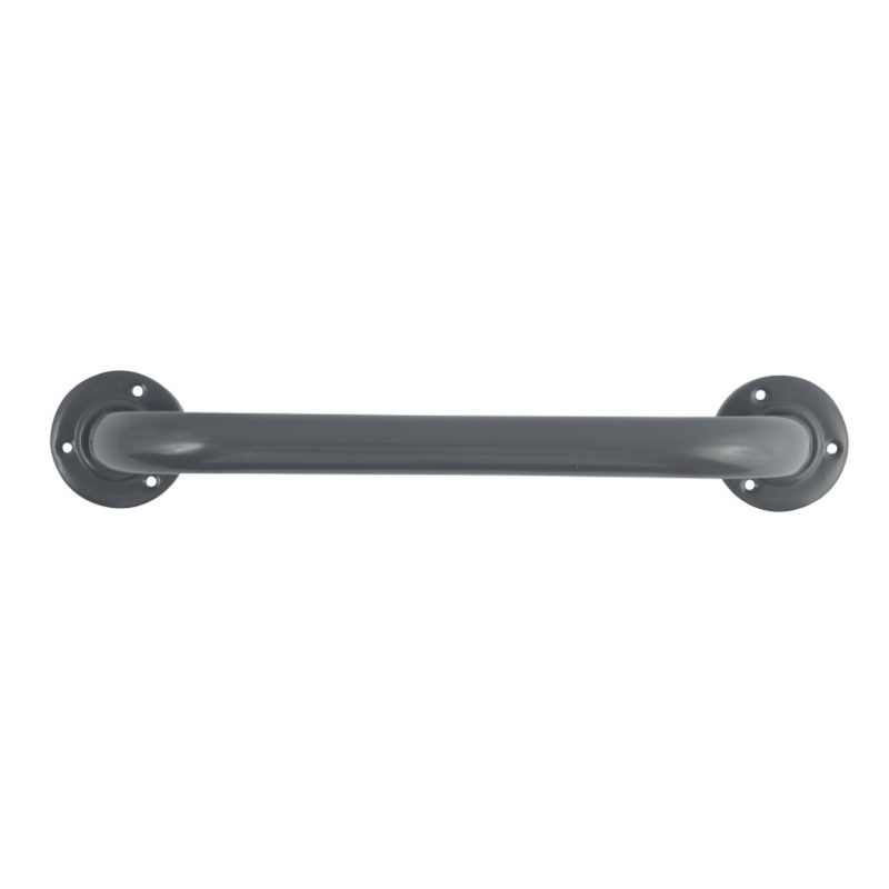 Stödhantag i stål. Gedigen konstruktion med säker montering. Plugg och skruv ingår. Rördiameter 25 mm.