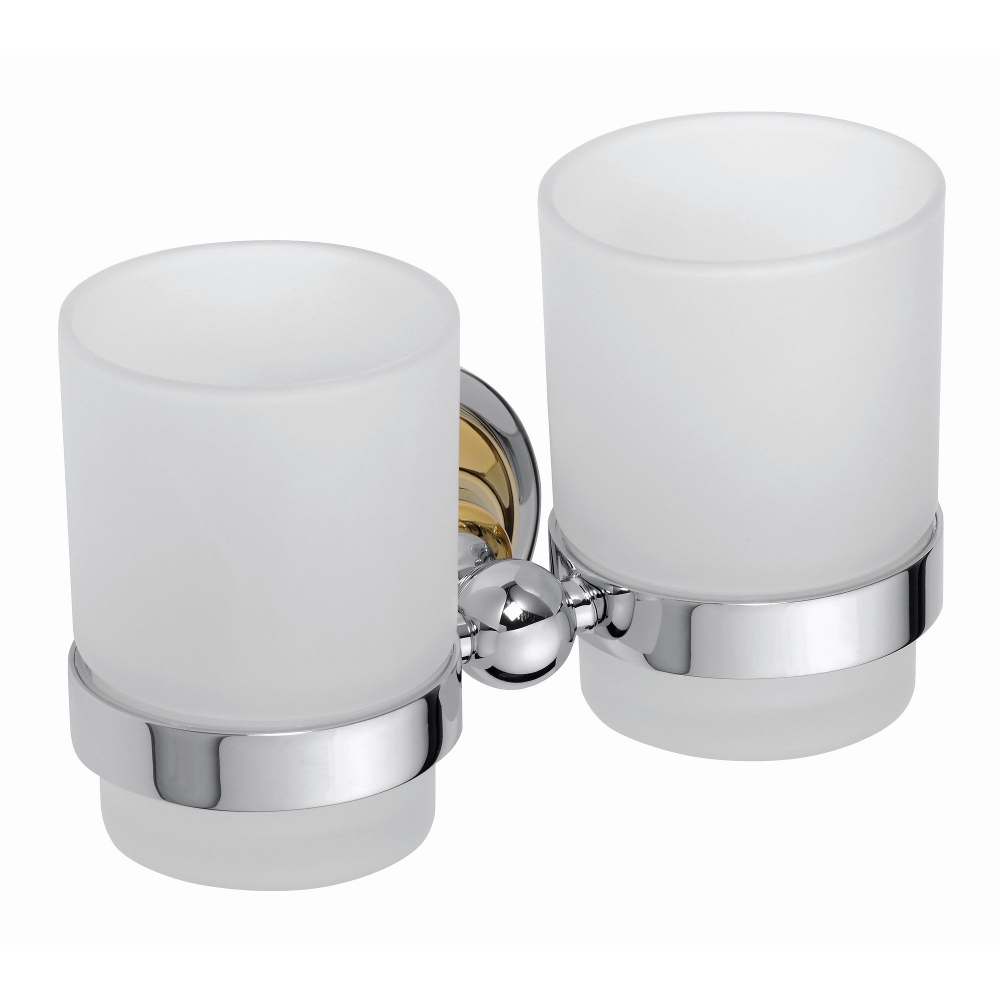 Tandborstglas Duschbyggarna Classic Dubbel är ett elegant, dubbelt tandborstglas i frostat glas med en hållare i metall. Det skruvas eller limmas upp på väggen.