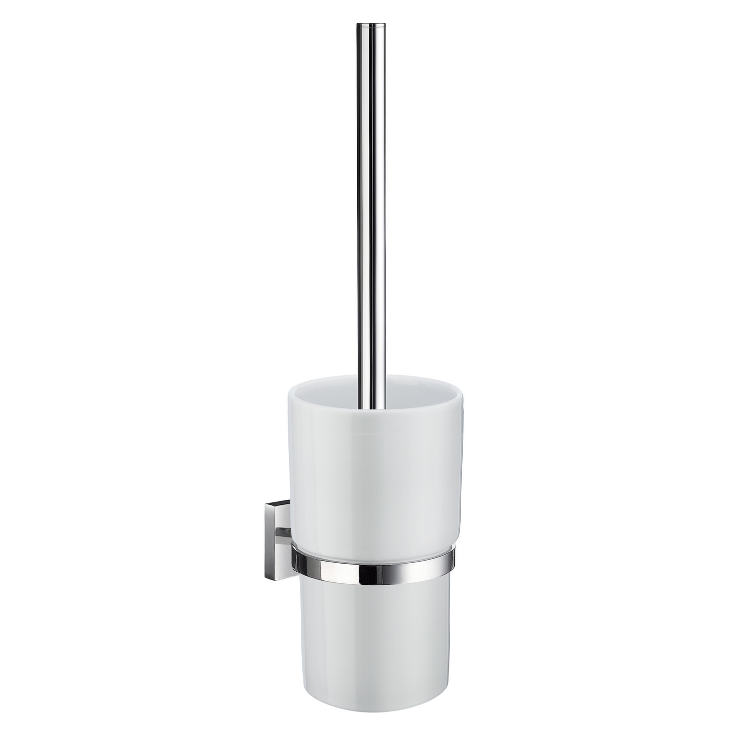 Toalettborste Smedbo House R333P är en stilren WC-borste med kopp för väggmontering. Den har en behållare av porslin och en hållare i metall. Den skruvas upp på väggen med dold montering. Borsten är utbytbar.