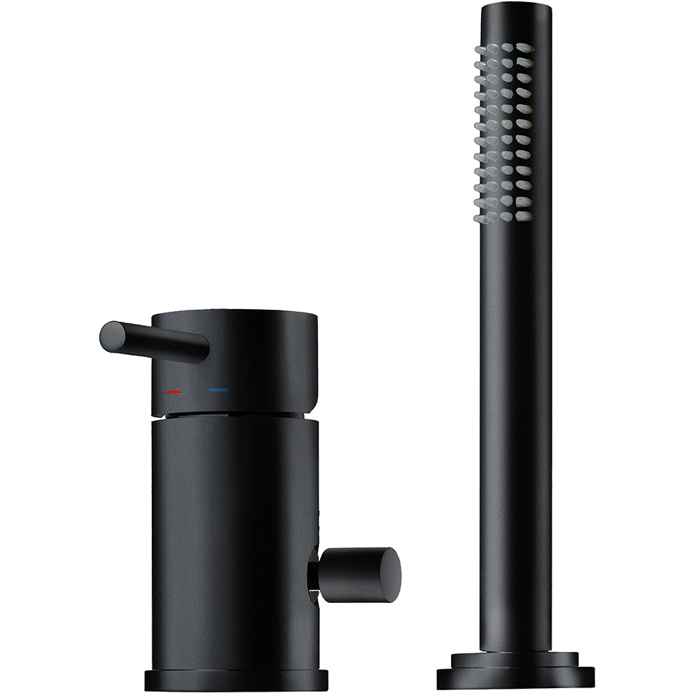 Dusch- och badkarsblandare med handdusch. För sargmontage, 2 hål. Påfyllning av badkar via bräddavlopp.