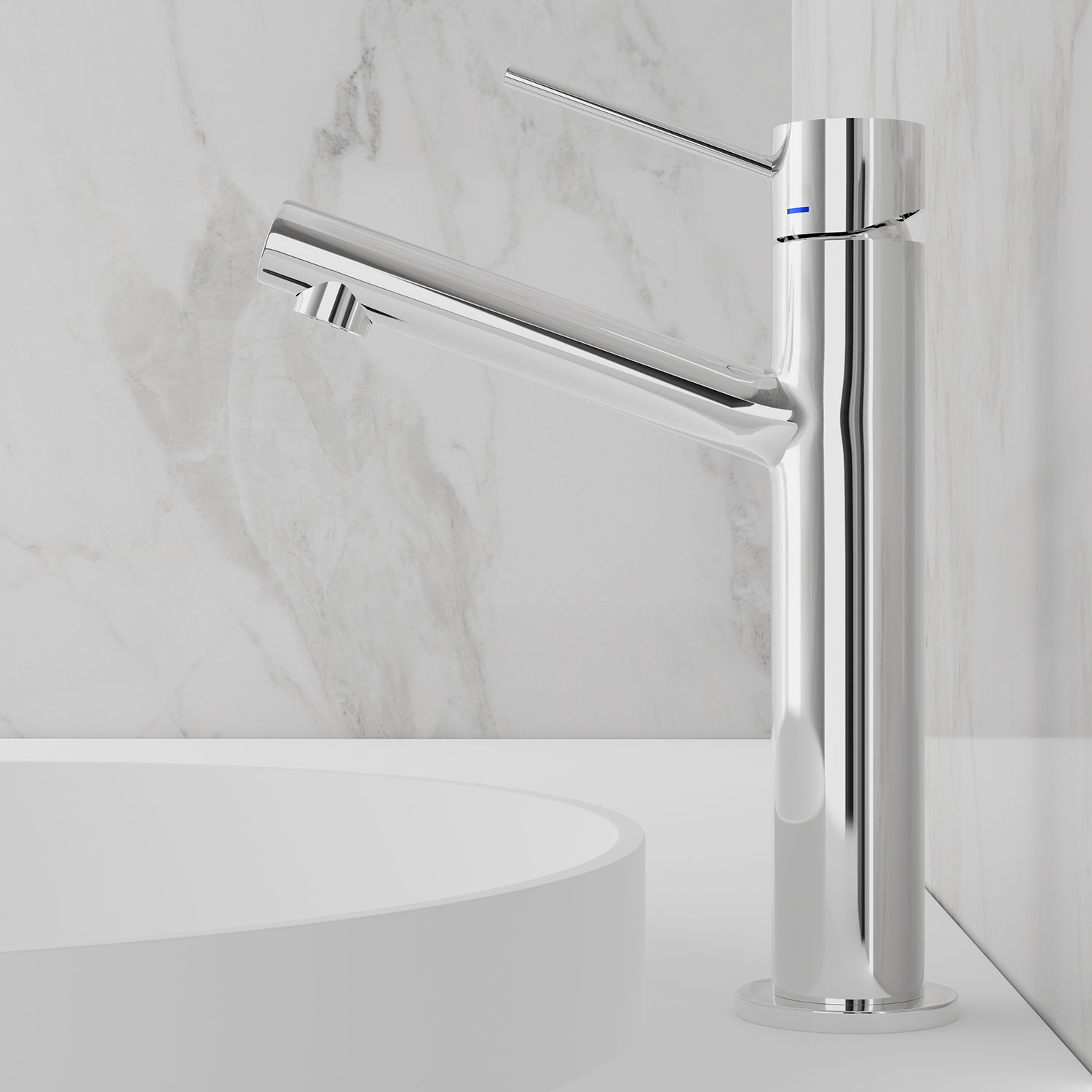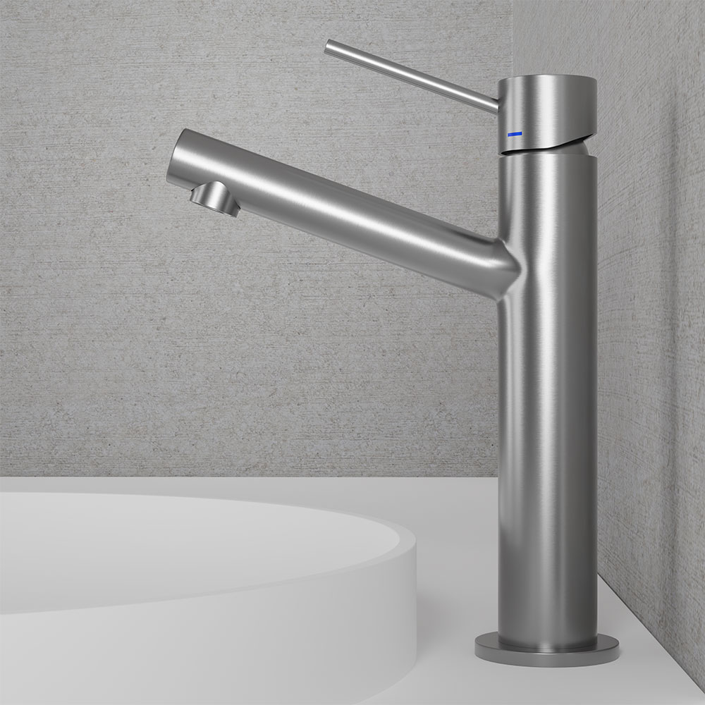 Tvättställsblandare Scandtap Steel Vector Medium i slimmad design med moderna inslag. Formgiven med diagonala linjer och i minimalistisk tappning. En medelhög modell utan skarv som passar utmärkt till infällda tvättställ och nedsänkta för extra handutrymme. Försedd med kvalitativa komponenter som sparar vatten och bibehåller ett perfekt anpassat vattenflöde. Neoperl anslutningsslang med 10 mm slät ända.