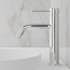 Tvättställsblandare Scandtap Steel Voyage Medium i minimalistisk design med unikt slimmade detaljer. Formspråket är en kombination av stilrena inslag och klassiska former. En medelhög modell utan skarv som passar utmärkt till infällda tvättställ och nedsänkta för extra handutrymme. Försedd med kvalitativa komponenter som sparar vatten och bibehåller ett perfekt anpassat vattenflöde. Blandaren levereras med Neoperl-anslutningsslang med 10 mm slät ända.