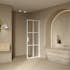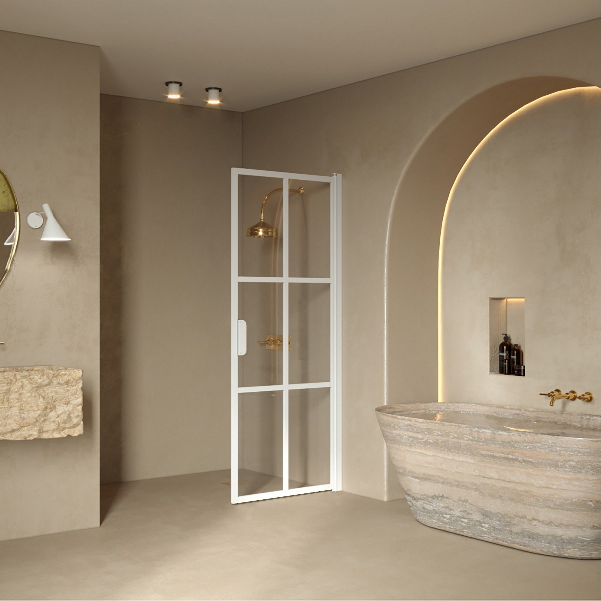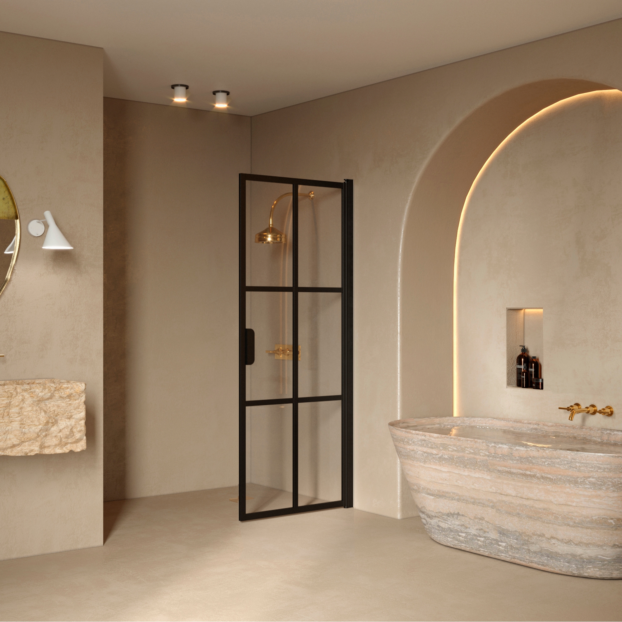 Duschdörr Hietakari Bläk 738 Paris Vändbar är en vändbar duschdörr i industriell stil. Den vändbara duschdörren skyddar effektivt mot vattenstänk då den monteras med en tillkommande släptätningslist. När duschen inte används kan duschdörren vändas mot väggen. Duschdörren vänds 90 grader i bägge riktningarna och förses med justerbar centrering. Centreringen strävar efter att återställa duschdörren till öppen respektive stängd position. Dörren är försedd med lyftgångjärn.