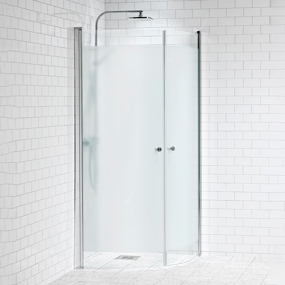 Duschhörn Alterna Lusso Svängd är ett stilrent duschhörn med mjukt rundade dörrar med snabbfästen för enklare montering och med limbar väggprofil. Duschhörnan med vändbara, svängda dörrar är tillverkad i 6 mm härdat säkerhetsglas med blankpolerade aluminiumprofiler i rostfritt stål. Den eleganta och moderna designen gör att duschen passar de flesta badrum. Duschdörrarna kan även öppnas inåt för platsbesparing, då höjs de 4 mm från golvet. Duschhörnan har justerbar väggprofil och levereras komplett med två duschdörrar, släplist, magnetlist och knopp/handtag.