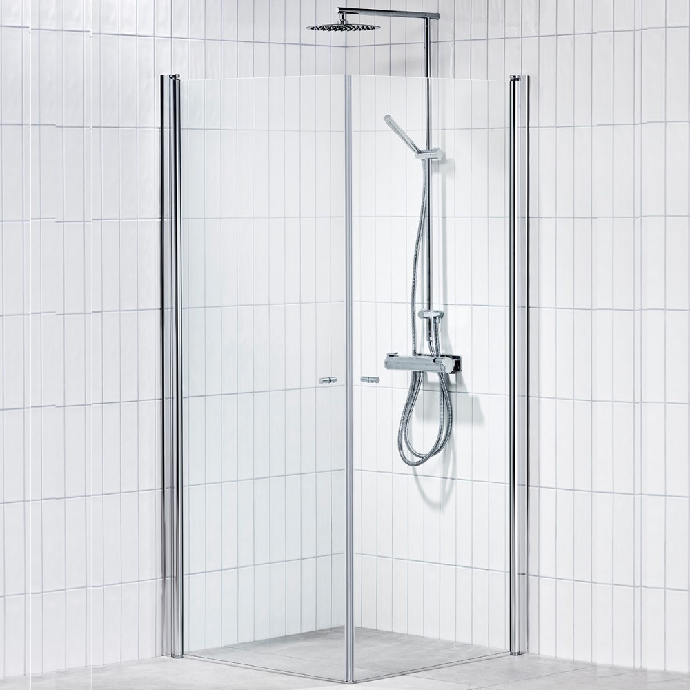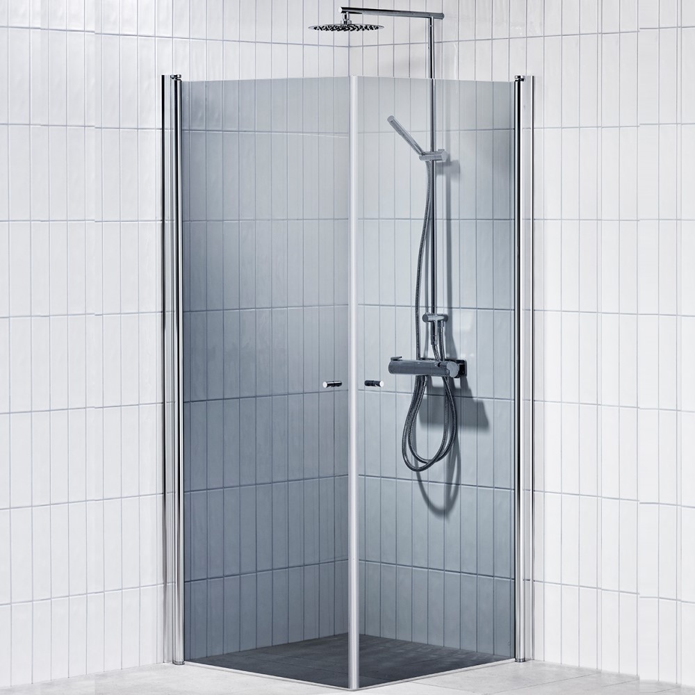 Väggprofilen i aluminium är justerbar i över- och underkant, vilket gör att den går att anpassa gentemot eventuella ojämnheter som påverkar montage. Dörrarna höjs och sänks cirka 4,5 mm vid öppning och stängning för att möta upp mot golvets ojämnheter, som exempelvis fall mot golvbrunn. Hörnet levereras kompletta med två enkelförpackade dörrar, magnetlist, släplist, handtag, skruv, plugg och monteringsanvisning.