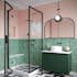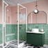 Duschhörn Hietakari Bläk 887 New York består av en fast vägg och en vikbar dörr, vilket gör den idealisk för hörnplacering där utrymmet är begränsat. Den är särskilt praktisk i hörn där det finns en möbel på ena sidan och där det andra sidan också är trång, vilket kan göra det svårt att öppna en vanlig dörr utåt. Den vikbara dörren kräver inget extra utrymme utanför duschutrymmet eftersom den viker sig inåt och glaset samlas kompakt mot väggen. Detta ger en smidig lösning, där den fasta väggen kan skydda möbeln och dörren kan anpassas för att passa det tillgängliga utrymmet.