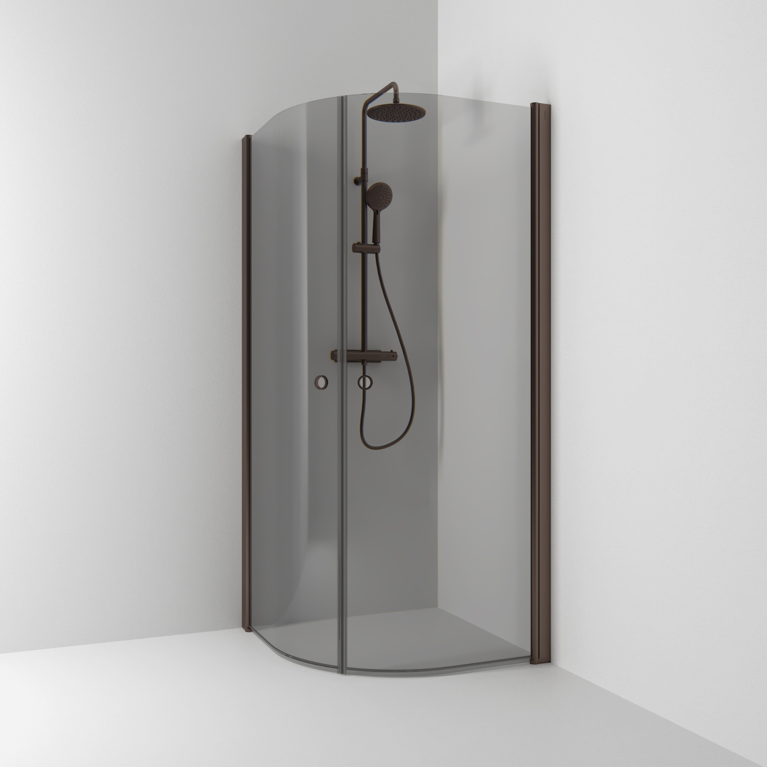 Duschhörn Svedbergs Skoga Halvrund skapar med sin mjuka och följsamma formgivning lugn och harmoni. Profilerna tillåter rördragning. Skogas duschvarianter kommer med hålgrepp som standard. Hålgreppet matchar duschprofilerna. Skoga förvaring passar ihop med alla Skoga profilduschar och ger dig extra vertikal förvaring på duschens insida. Förvaringen monteras mellan dusch och vägg samt har fem fasta hyllor.Väggprofil medger rördragning 30 mm från vägg. Duschväggarna kan kompletteras med byggprofiler med djup 30 alt 50 mm. Samtliga mått är vändbara för höger alt vänsterplacering av duschhörnet.DesignSlimmat, praktiskt och tättslutande med fokus på funktion och flexibilitet. ValbarhetHörn-, nisch- och skärmvägg. Hörndusch och skärmvägg för badkar. Integrerad platsbesparande Skoga Förvaring.FunktionInvikningsbar och platsbesparande. Vändbar för höger och vänster placering. Lyftbeslag för enkel öppning, stängning och rengöring. Förberedd för limbeslag. Lättmonterad.Kvalité6 mm härdat säkerhetsglas. CE-märkt. Svensktillverkd med 20 års garanti. Egenskaper• Hörndusch• Mått: 80x80, 80x90, 90x90.• Höjd: 198 cm• Dörröppning: 99-114 cm.• Glas: Klarglas, rökglas, frostglas.• Profil: Alu blank, alu matt, polerad blyertssvart, svart matt.• Består av två öppningsbara dörrar med transparent tätningslist i nederkant.• Dörrarna kan vikas inåt när duschen inte används, vilket frigör maximal golvyta.• Tröskelfri - handikappvänlig.• Härdat säkerhetsglas 6 mm.• Väggprofil medger rördragning 30 mm från vägg.• Duschväggarna kan kompletteras med byggprofiler 30 alt 50 mm.• Samtliga mått är vändbara för höger alt vänsterplacering av duschhörnet.• Lätt att montera. Profilerna kommer monterade på glaset.• Inklusive hålgrepp. Handtag finns som tillval.• Svensktillverkad• 20 års GarantiSkötselrådRengöring av Svedbergs duschar sker enklast med en fuktig trasa med eventuellt lite vanligt rengöringsmedel. Rengöring av duschglasen sker med hjälp av, för badrum och ändamålet avsedda rengöringsprodukter. Avtorkning av ytorna bör ske med frottéhanduk eller annat mjukt material. Du bör undvika skurmedel och andra medel som innehåller slipmedel, syror eller ammoniak. Missfärgningar tar man lättast bort med citron - eller vinsyra, som man noga sköljer bort efteråt. För kalkavlagringar kan man använda hushållsättika som värmes till en temperatur av 50 °C. Gnid sedan in ättikan mot kalkfläcken och låt verka. Upprepa behandlingen vid behov.