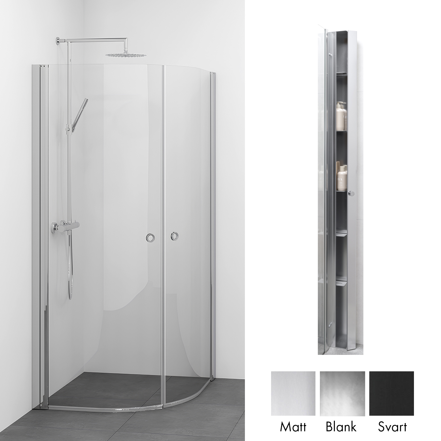 Finns i färgerna blank, matt och svart. Välj på matchande färg på duschhörnans profil.