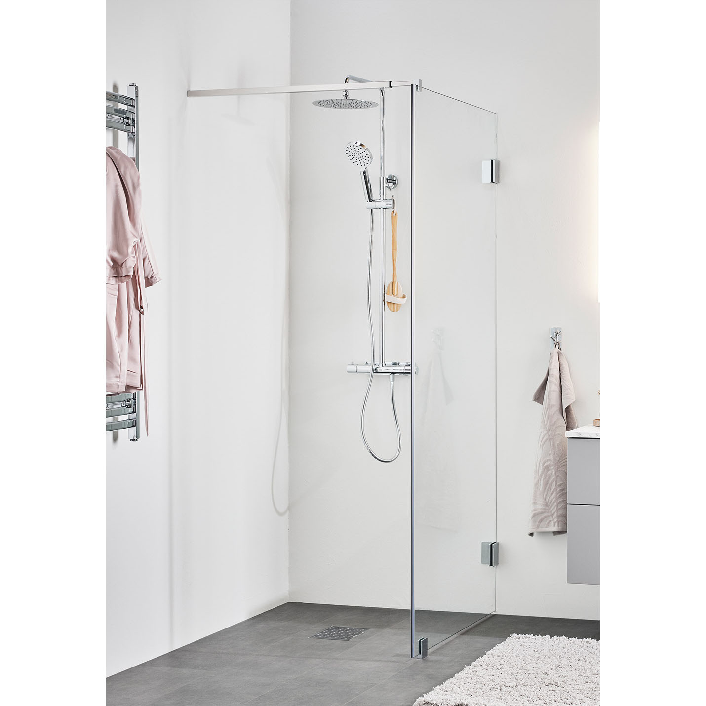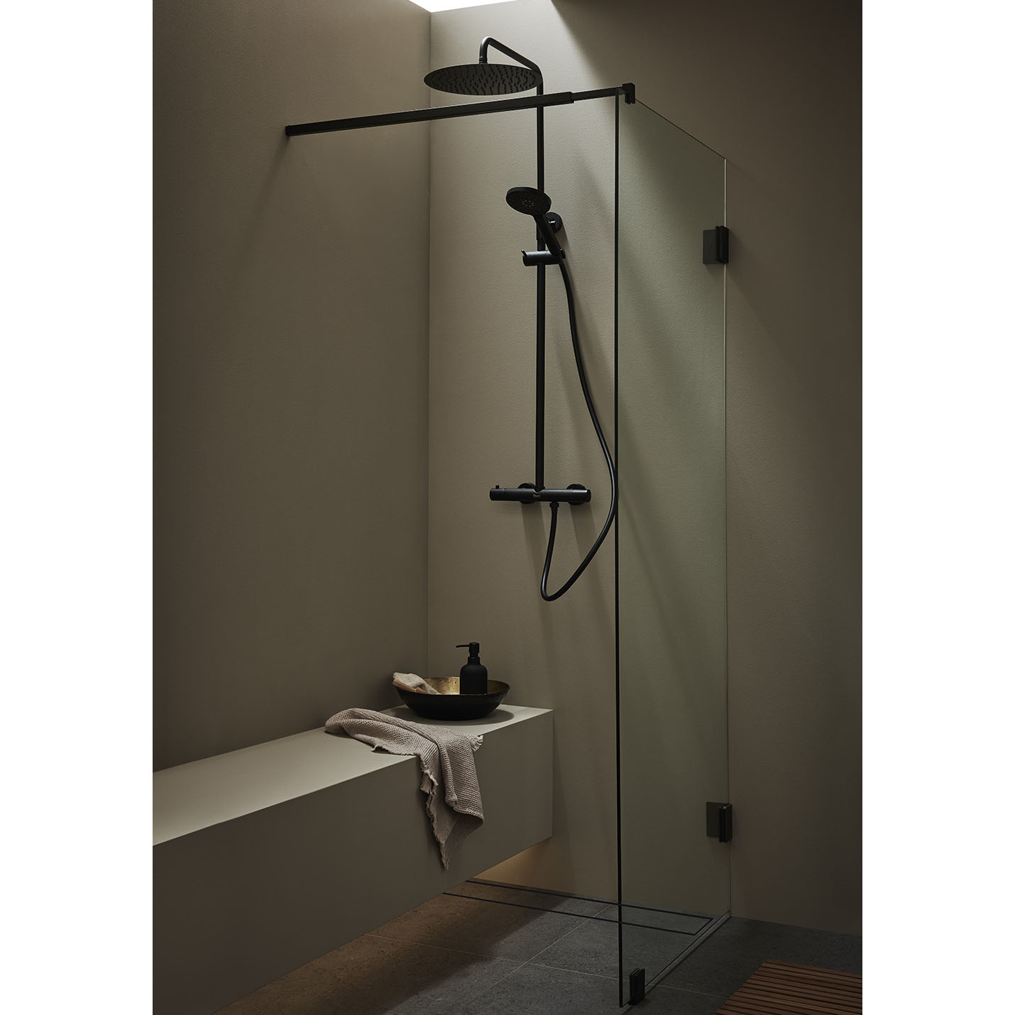 Duschväggen kan kombineras med dörrar i Infinity-serien eller komplettera med ett vackert duschdraperi för att skapa en ombonad och lyxig dusch.