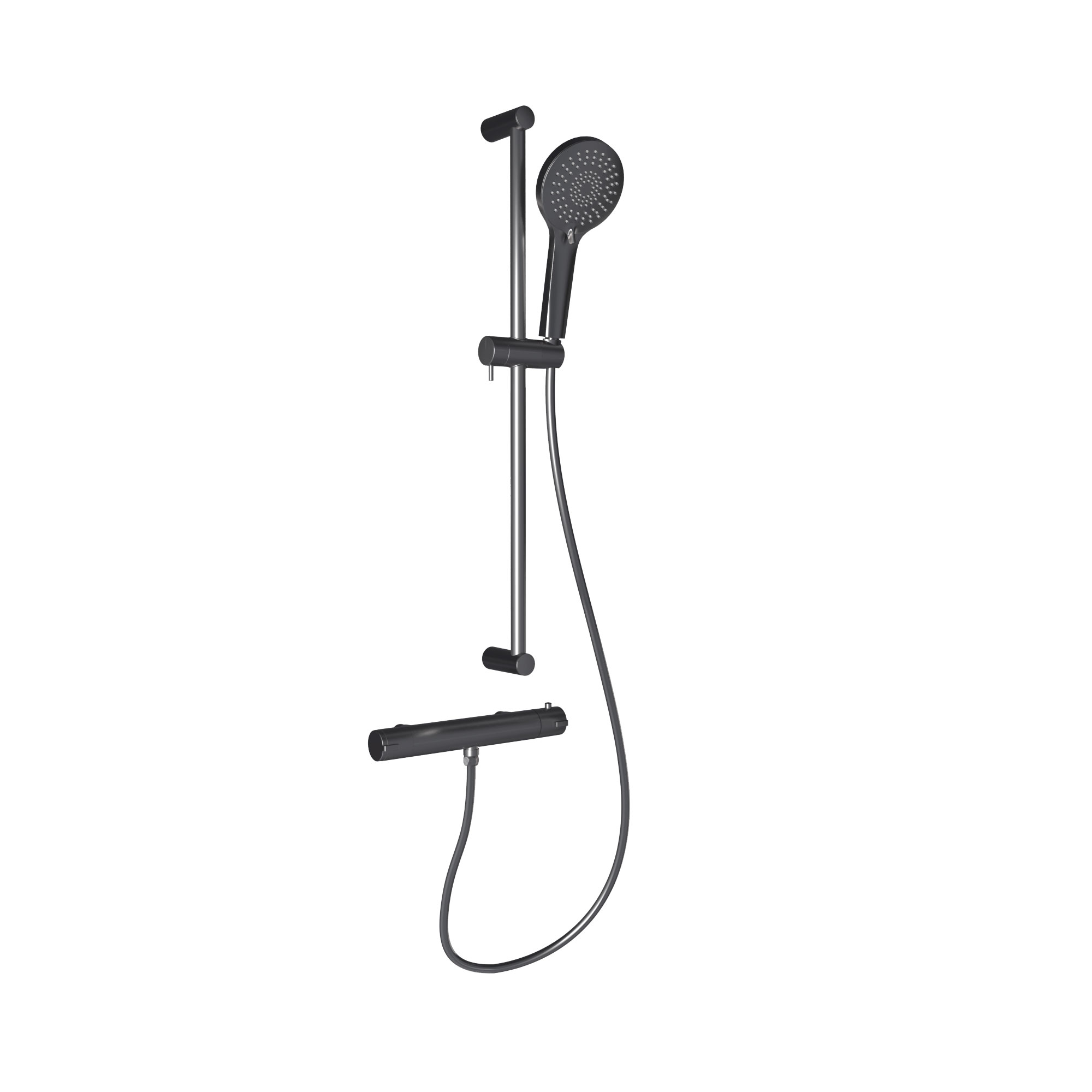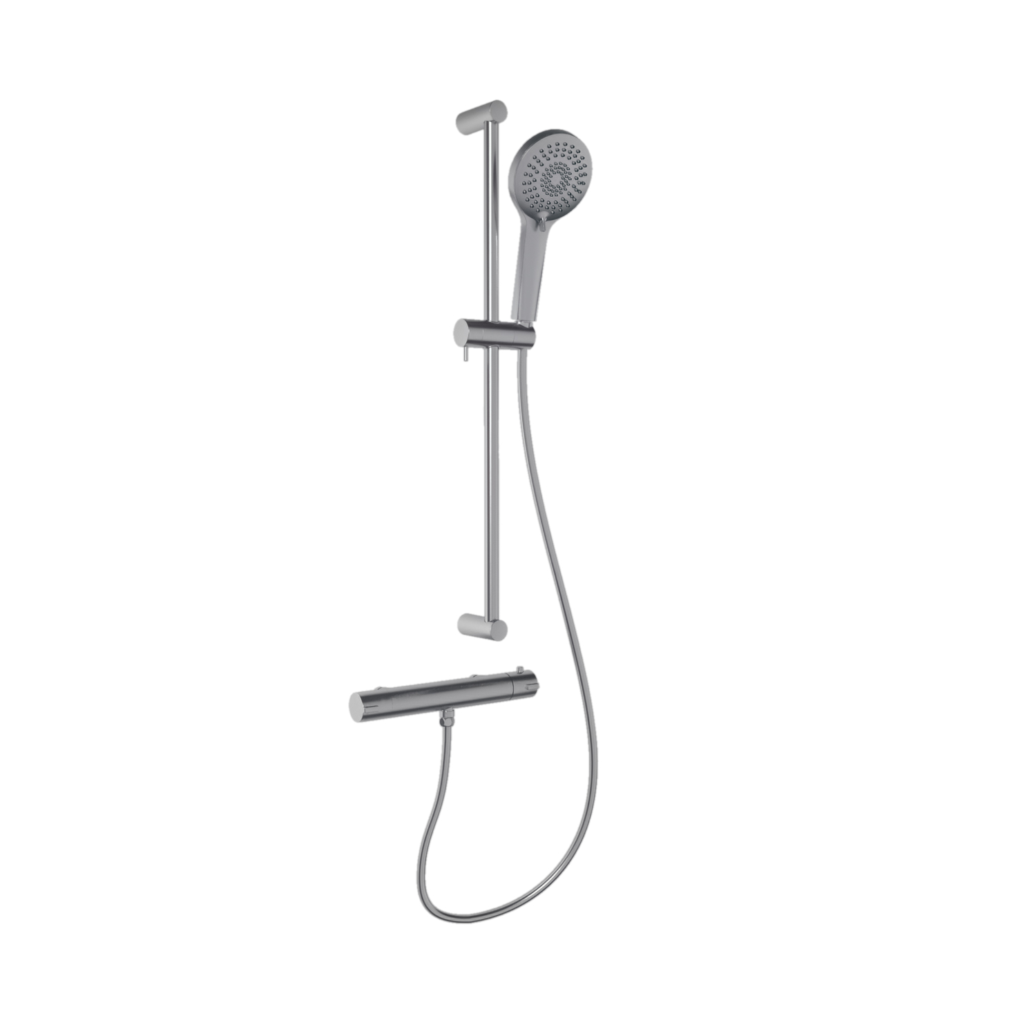 Duschset Svedbergs Spika är ett elegant duschset med justerbar duschstång som levereras med handdusch, duschstång, termostat samt duschslang.
